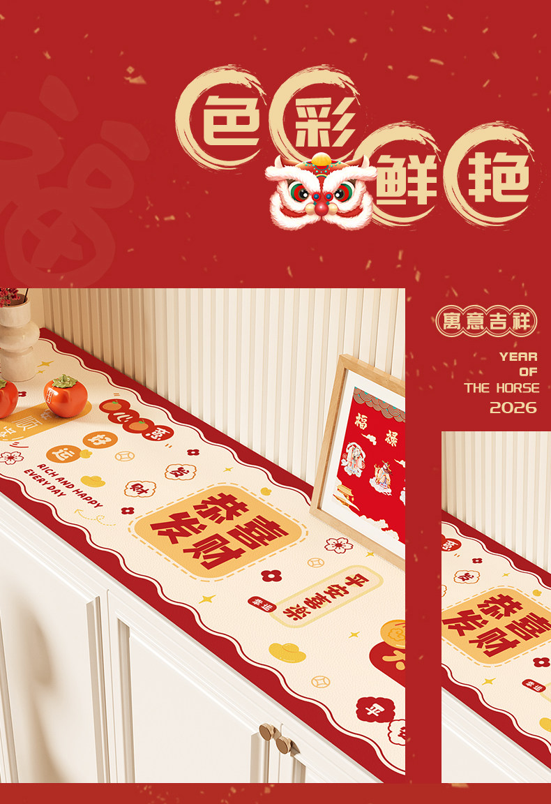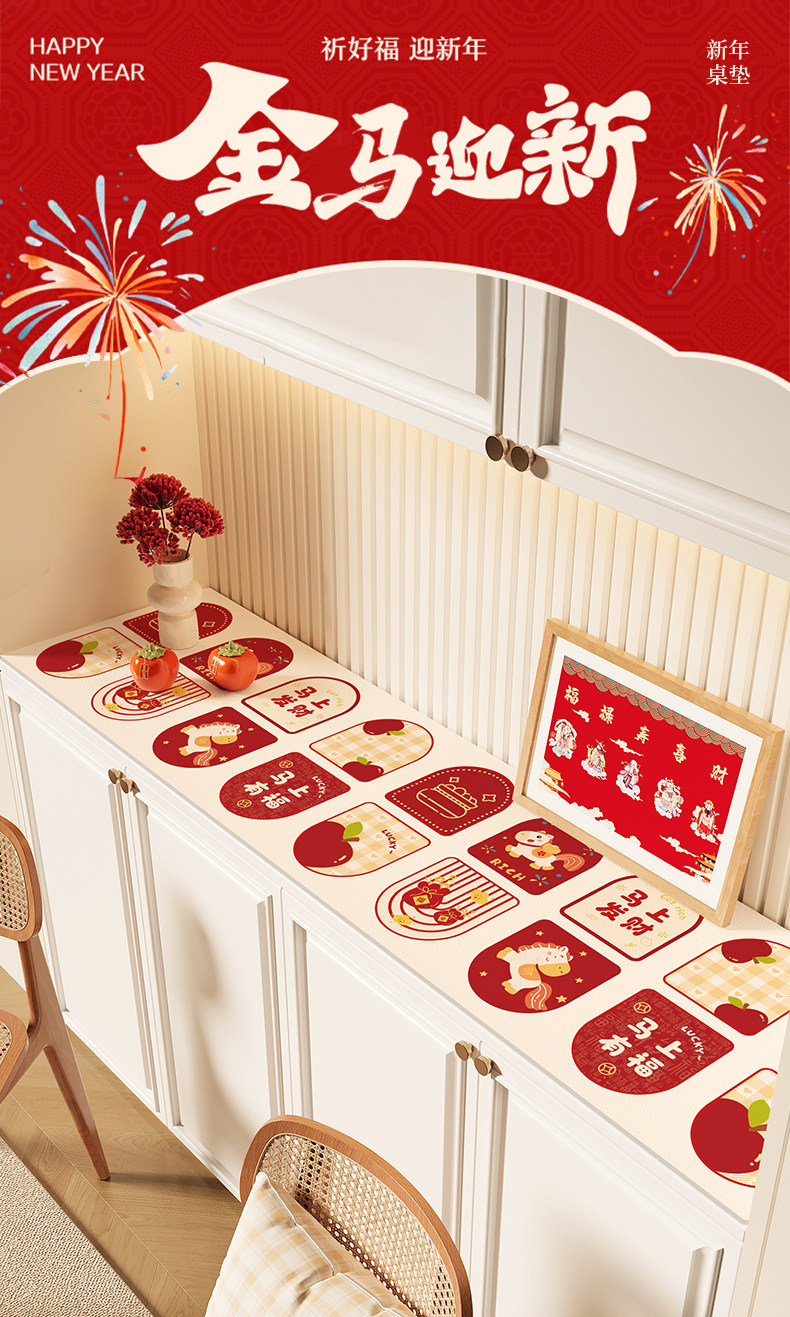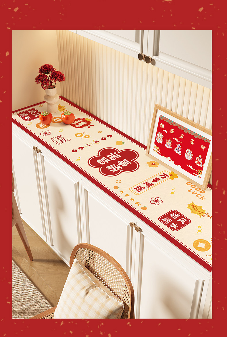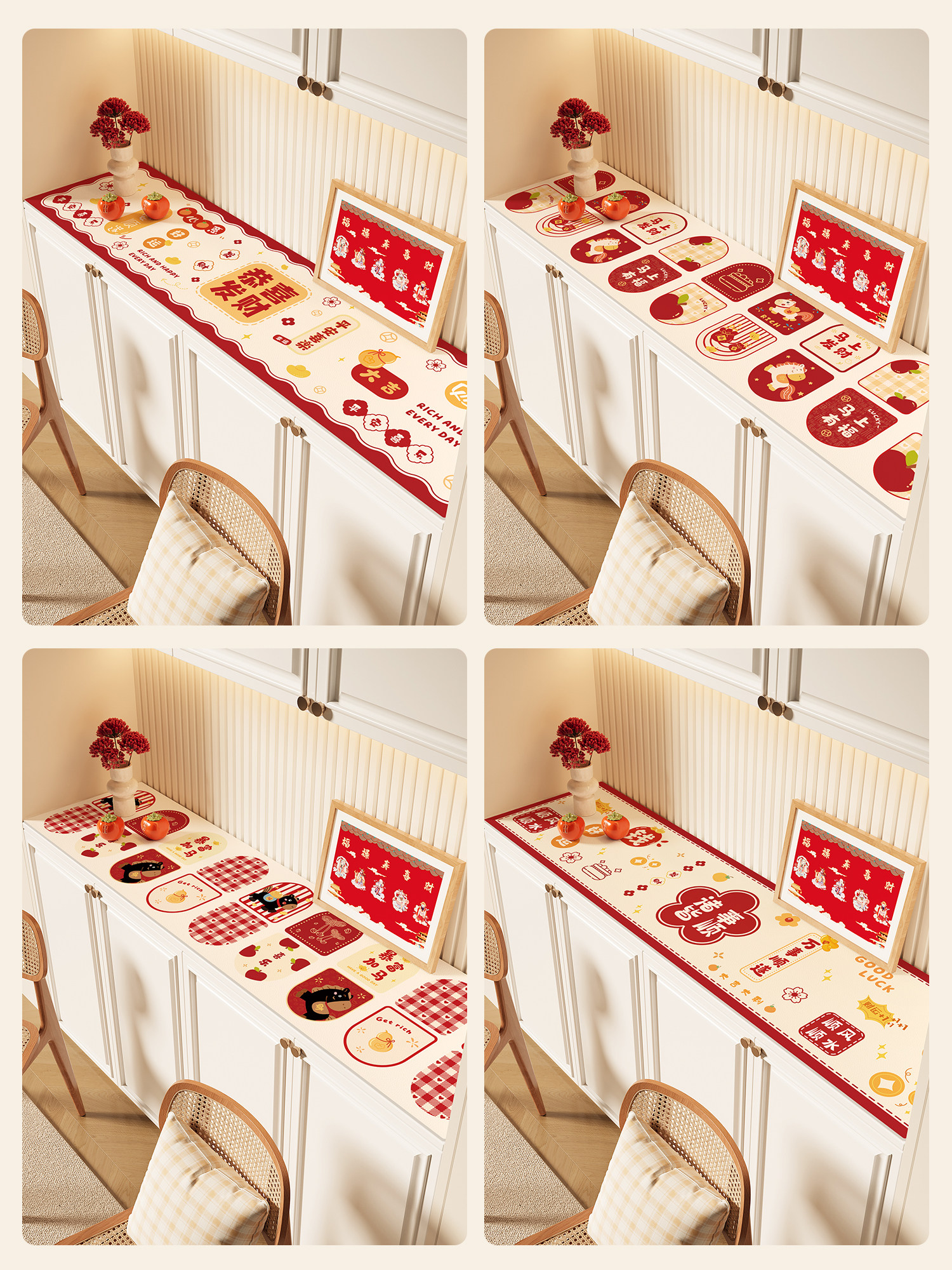 2026 New Year's Dining Side Countertop Protective Mat, TV Cabinet Mat, Festive Atmosphere Tablecloth Entrance Shoe Cabinet Anti-Dirt Mat