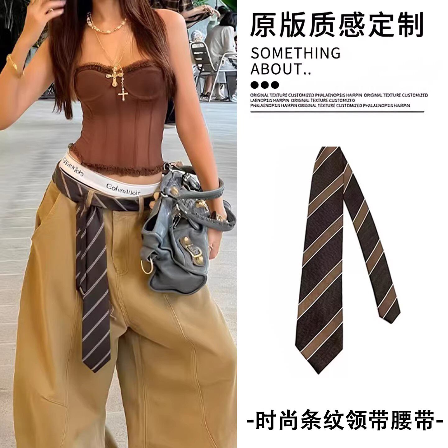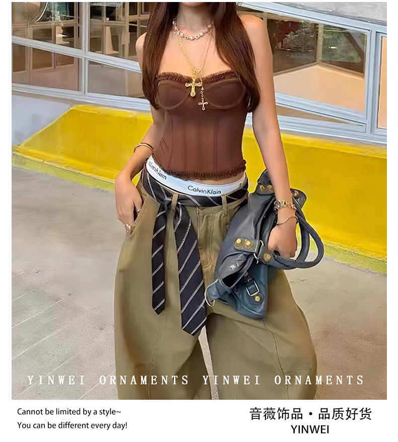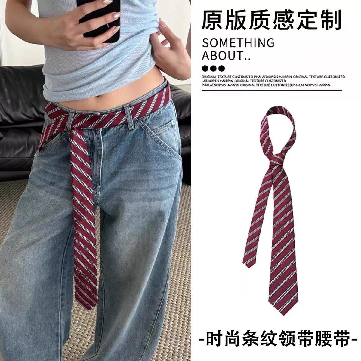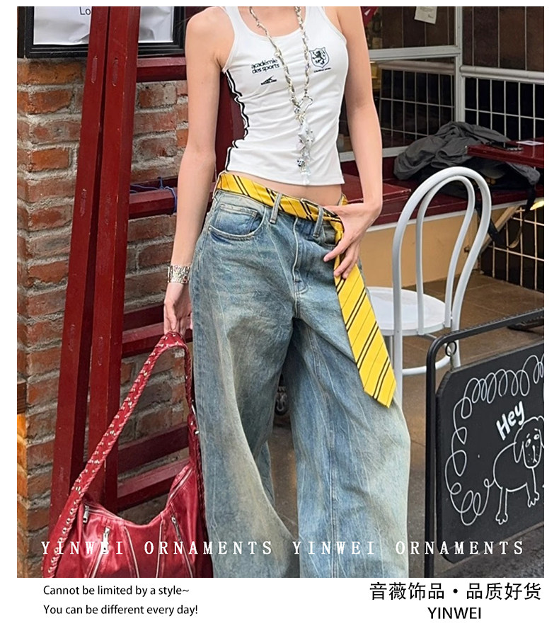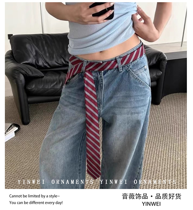 Vintage American Striped Tie Belt Women's 2026 New High-End Versatile Waist Chain with Jeans Waist Chain Accessories