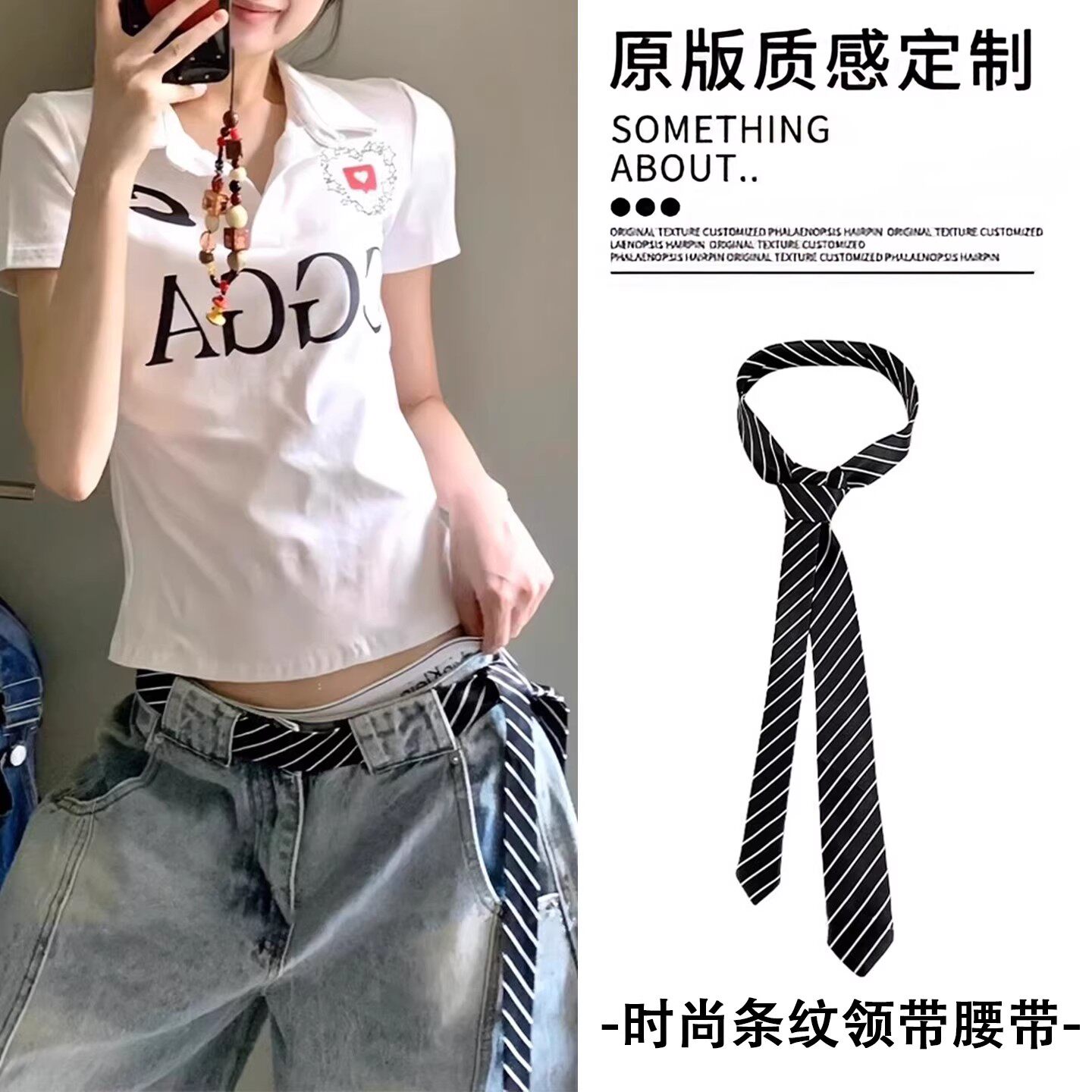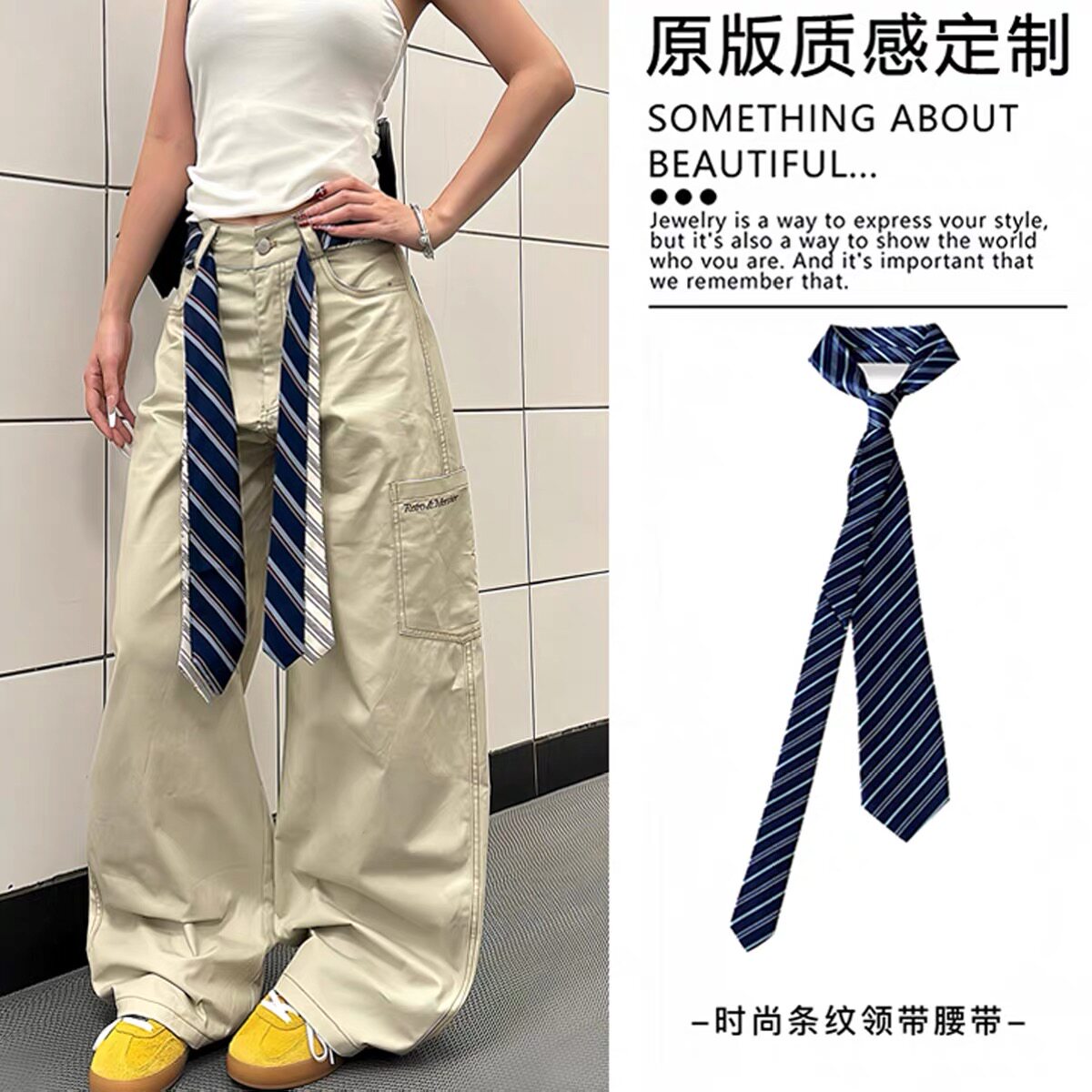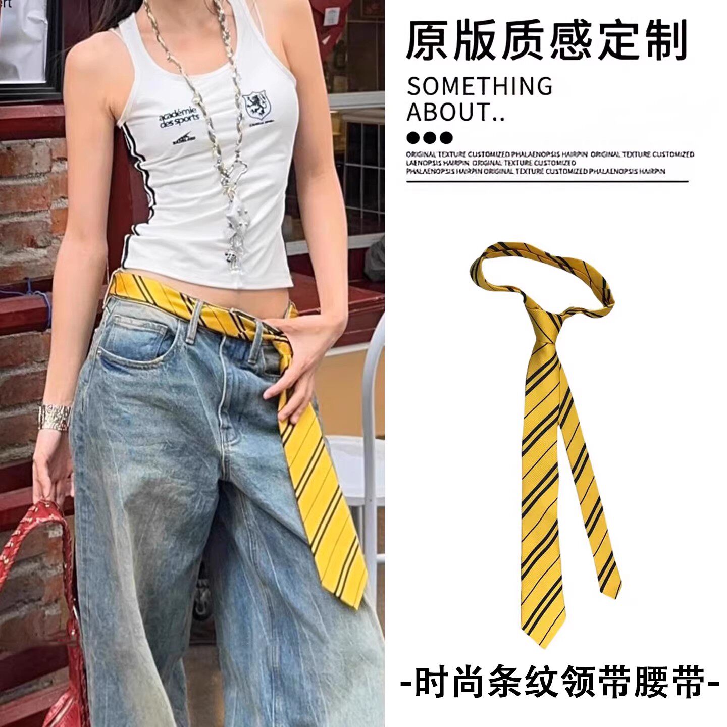 Vintage American Striped Tie Belt Women's 2026 New High-End Versatile Waist Chain with Jeans Waist Chain Accessories