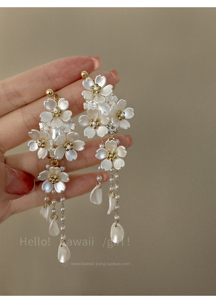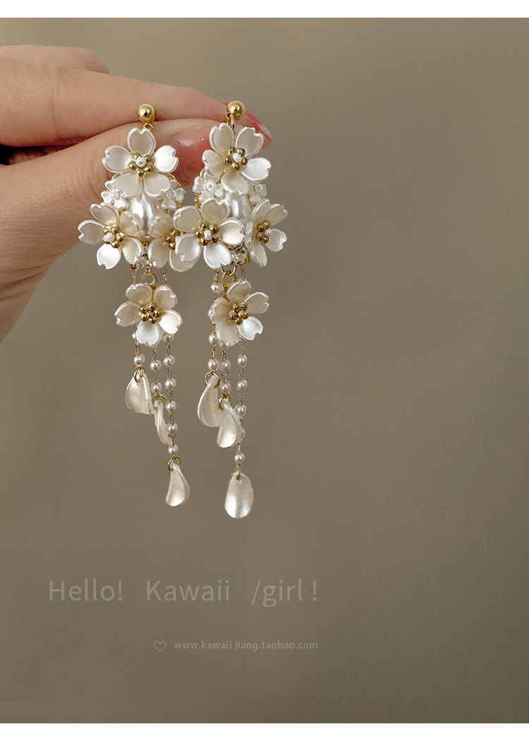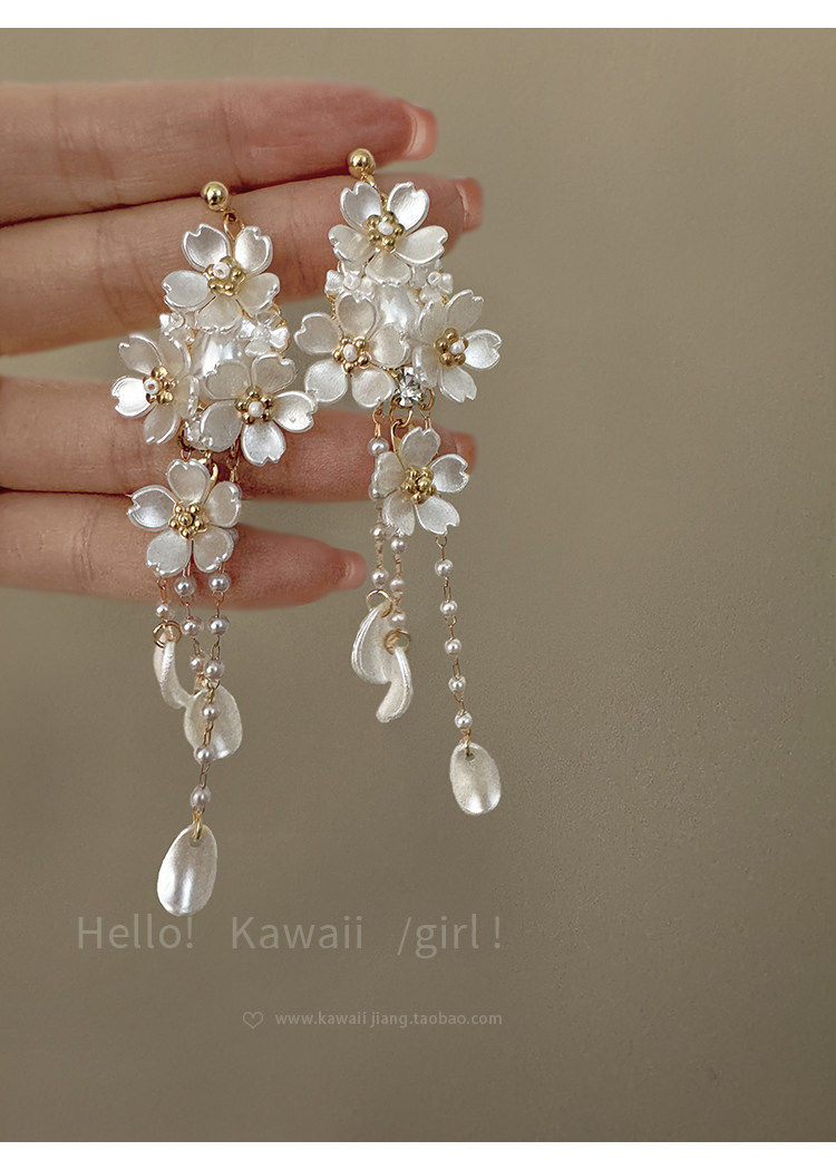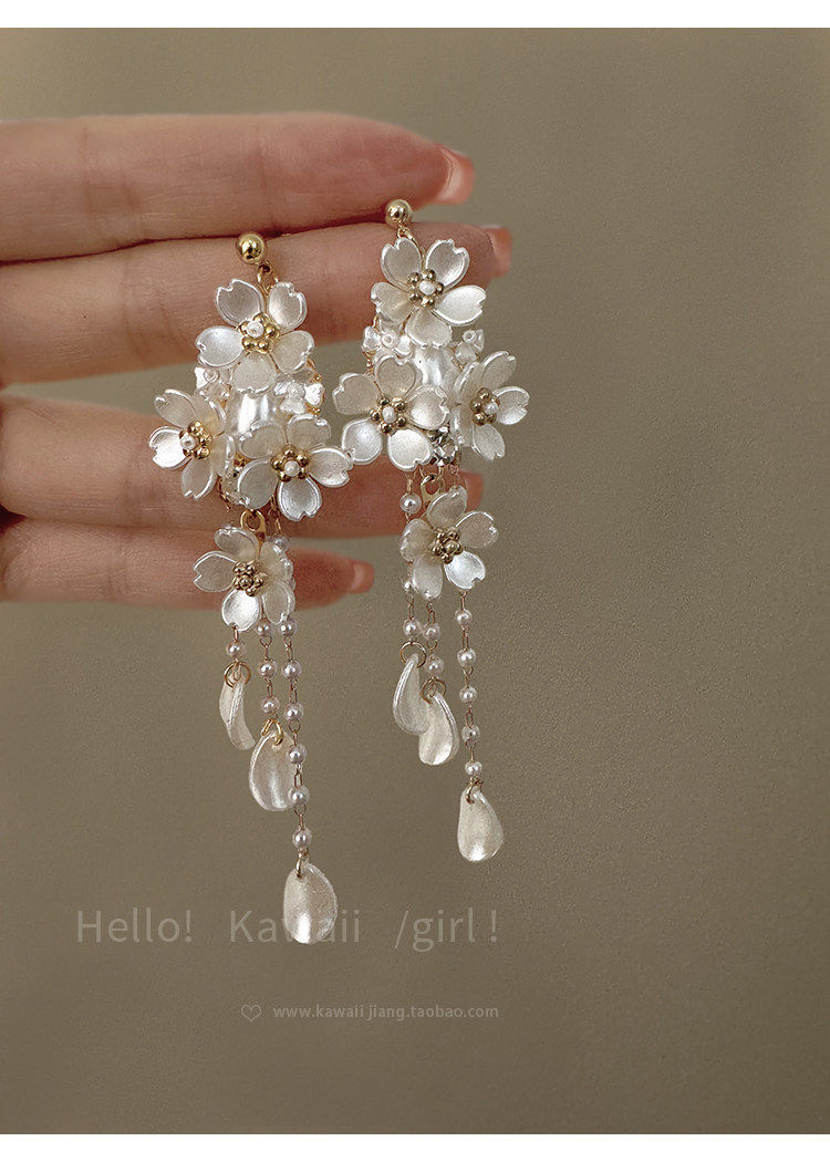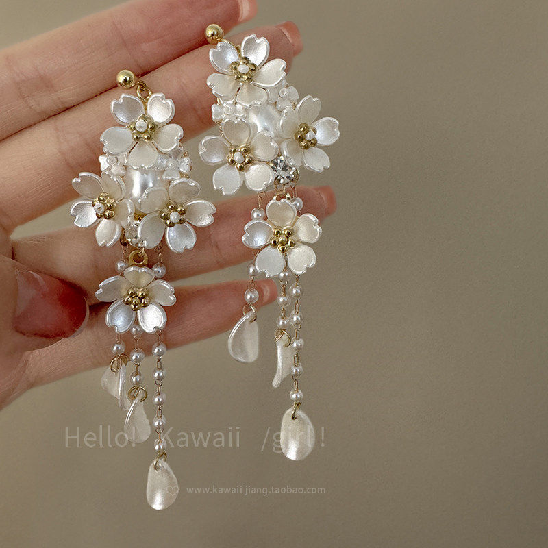 Snow and cherry blossoms fall! Pearl tassel stud earrings with dress earrings, earrings, earrings, flower accessories, accessories for summer 2026