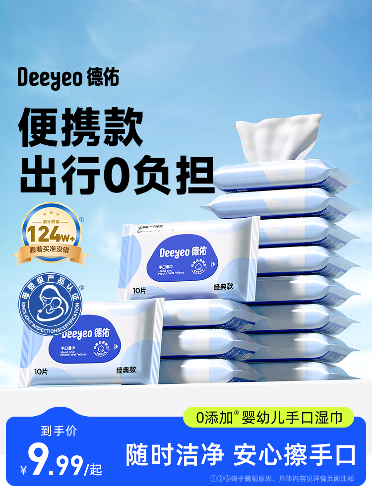 Deyou baby wet wipes small bag portable primary school students, newborns, toddlers, special travel children's wet wipes