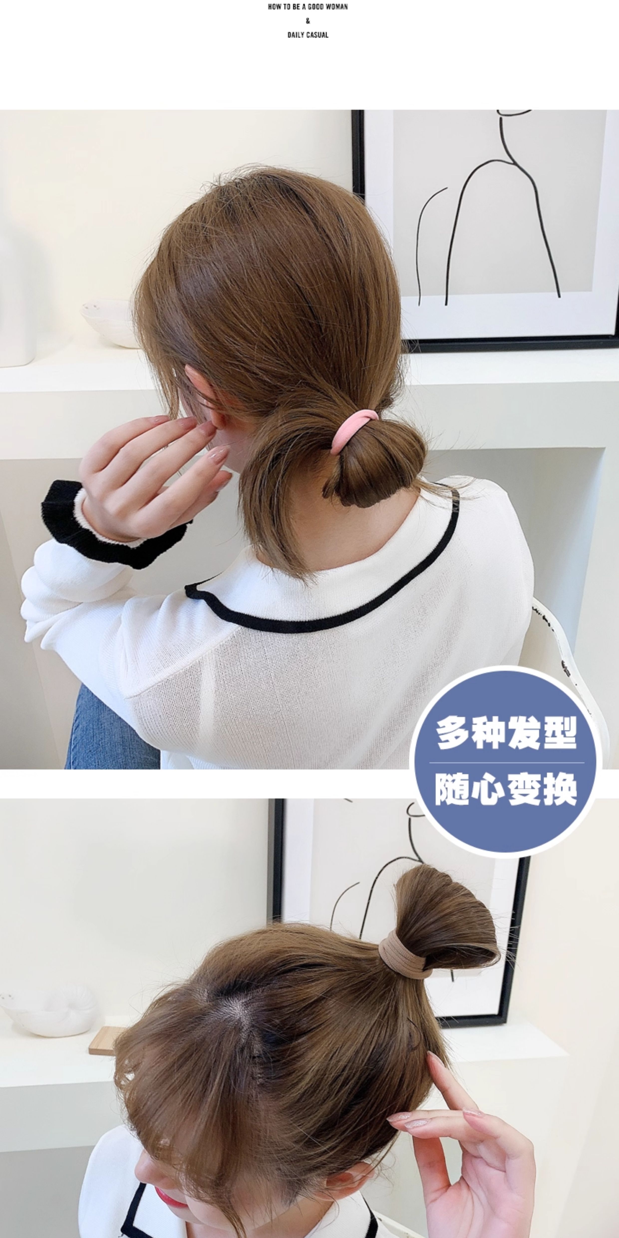Head rope rubber band women's tie high elasticity durable Internet celebrity ponytail hair rope simple tie hair leather case black scrunchie
