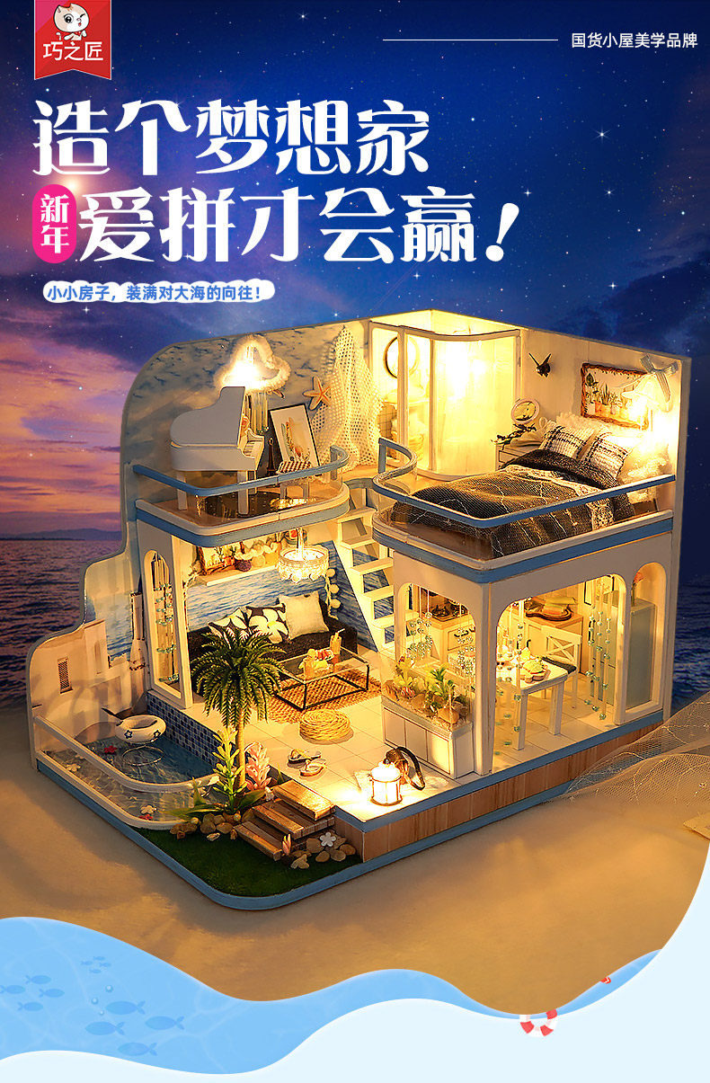 DIY cottage villa handcraft assembly mini house miniature diorama building blocks toy birthday gift for girls