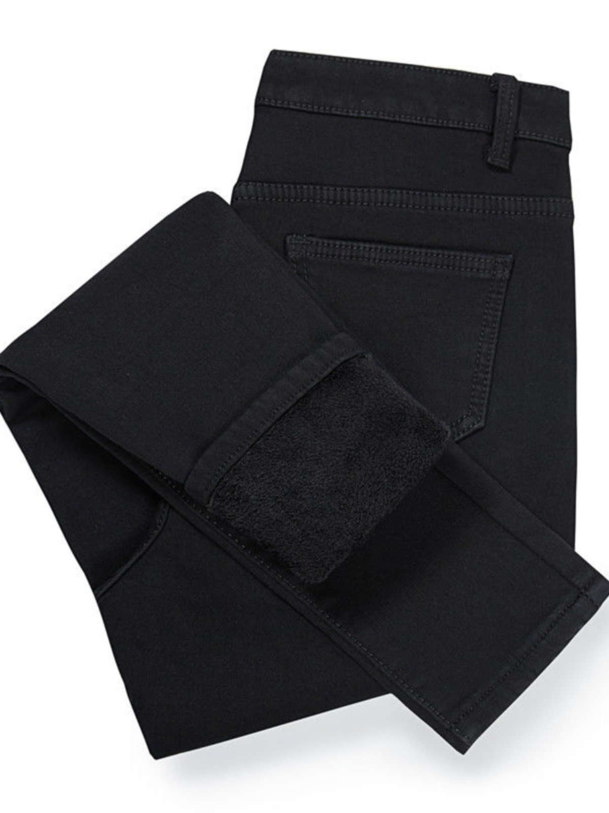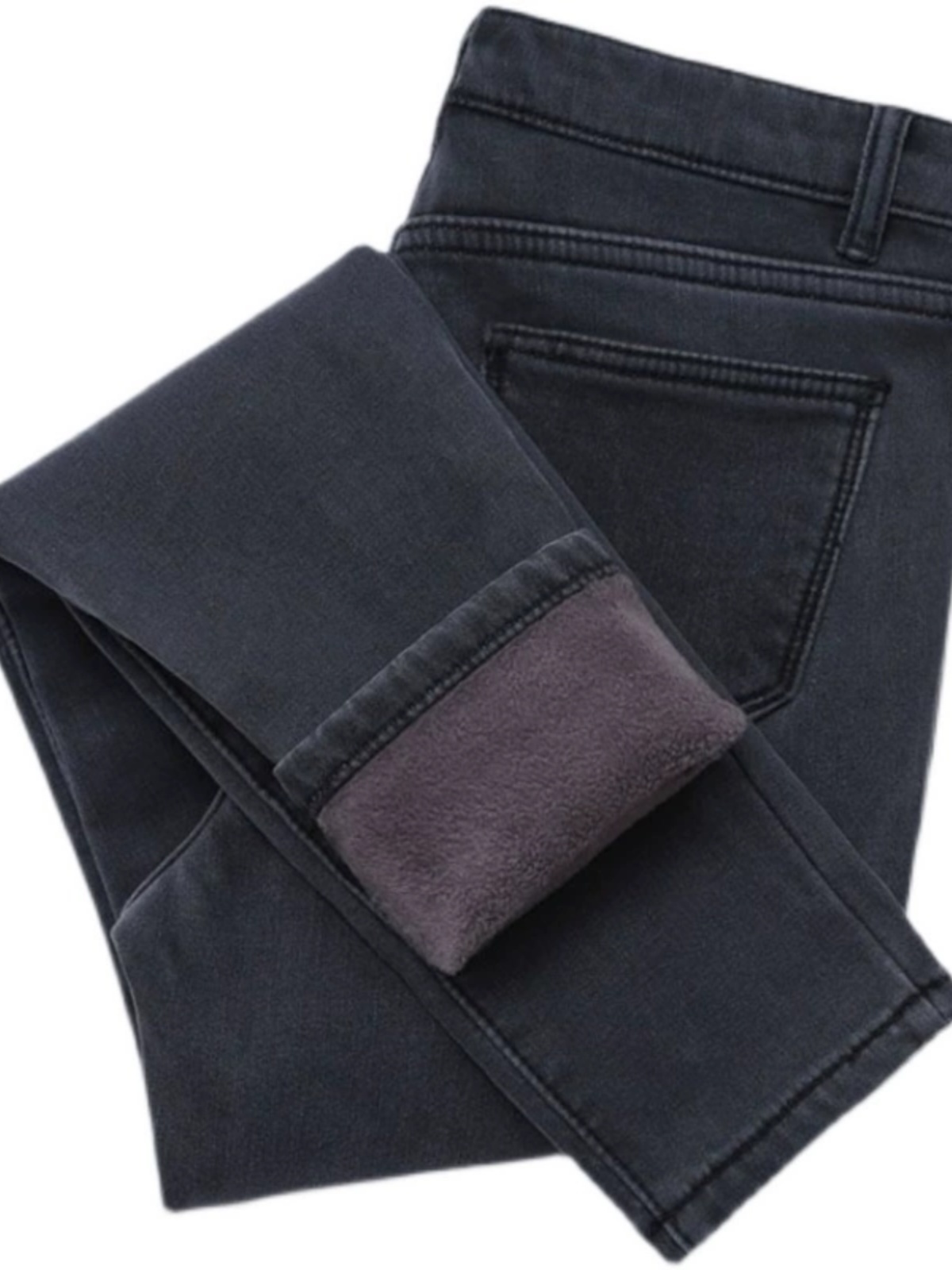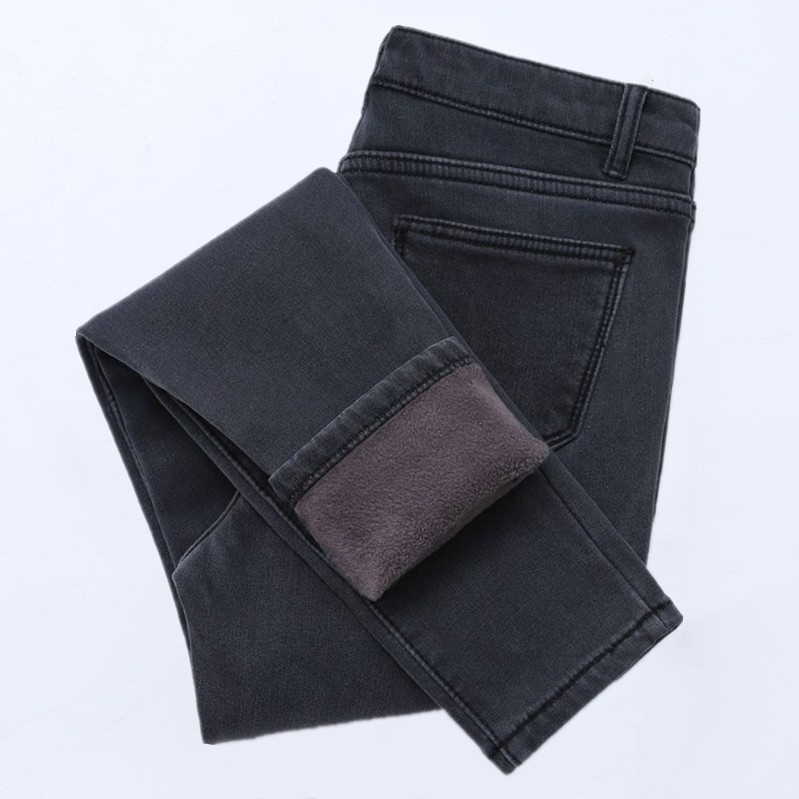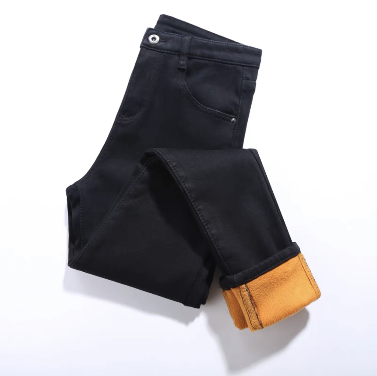 Winter fleece jeans, women's high-waisted stretch slim Korean version of small-legged pants, slimming and wearing trousers, new 2025 model