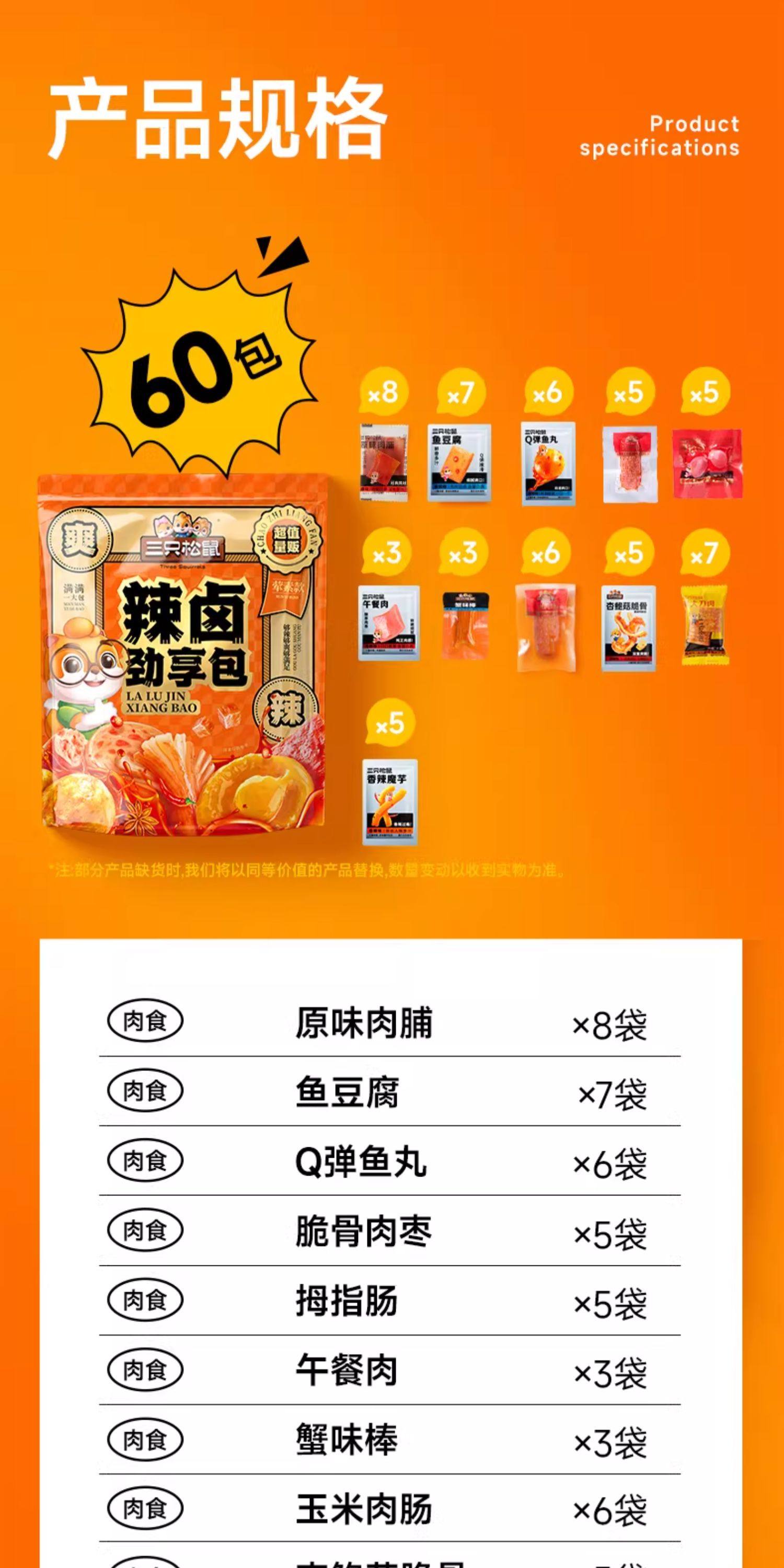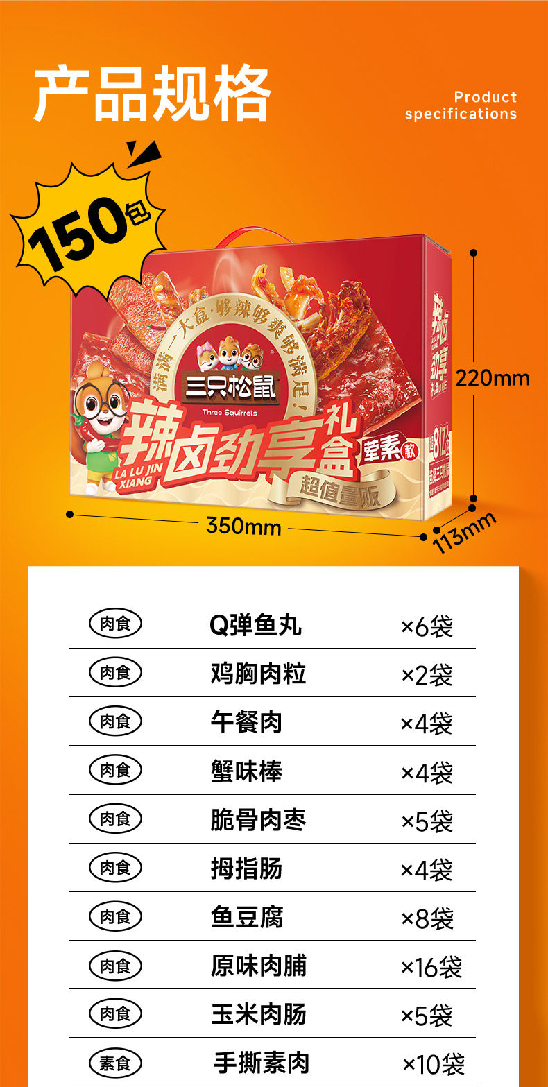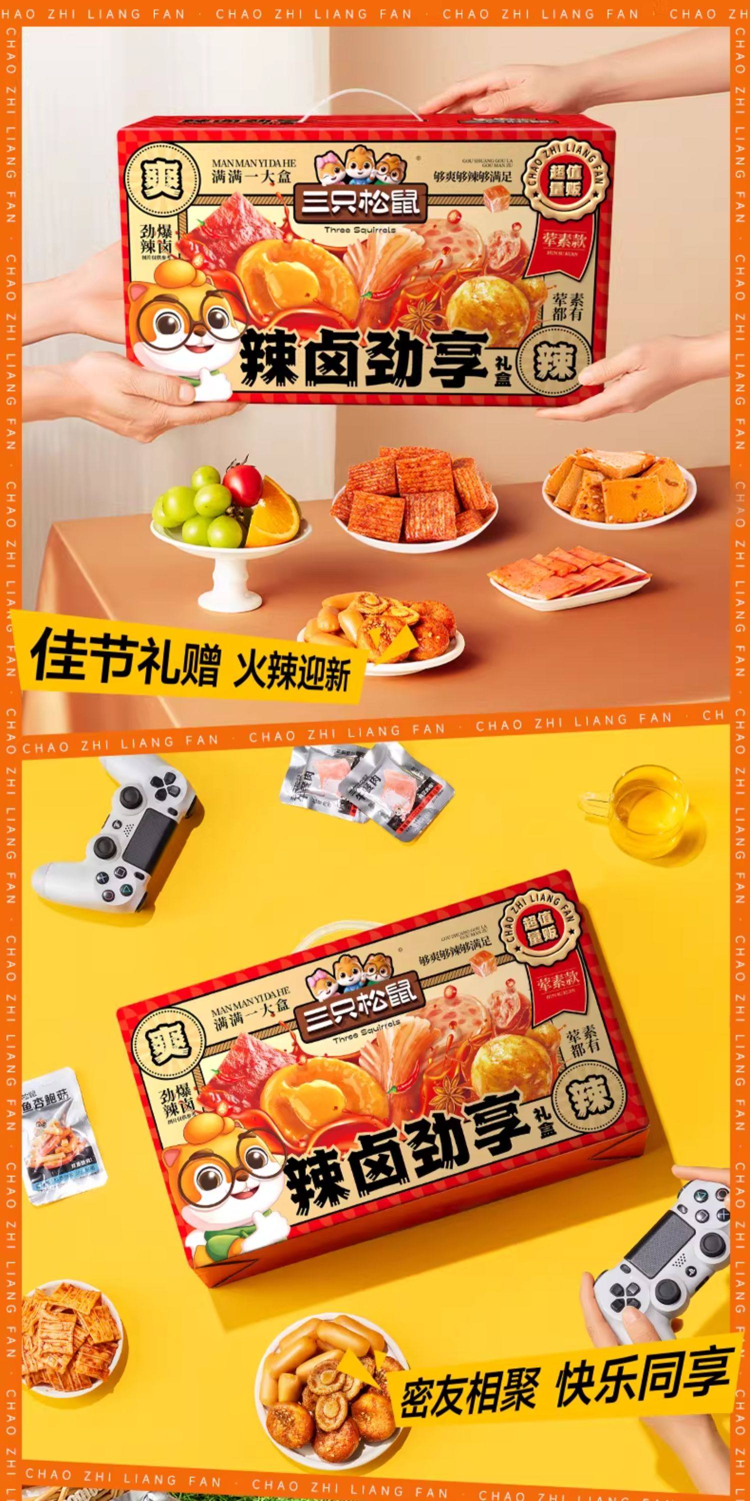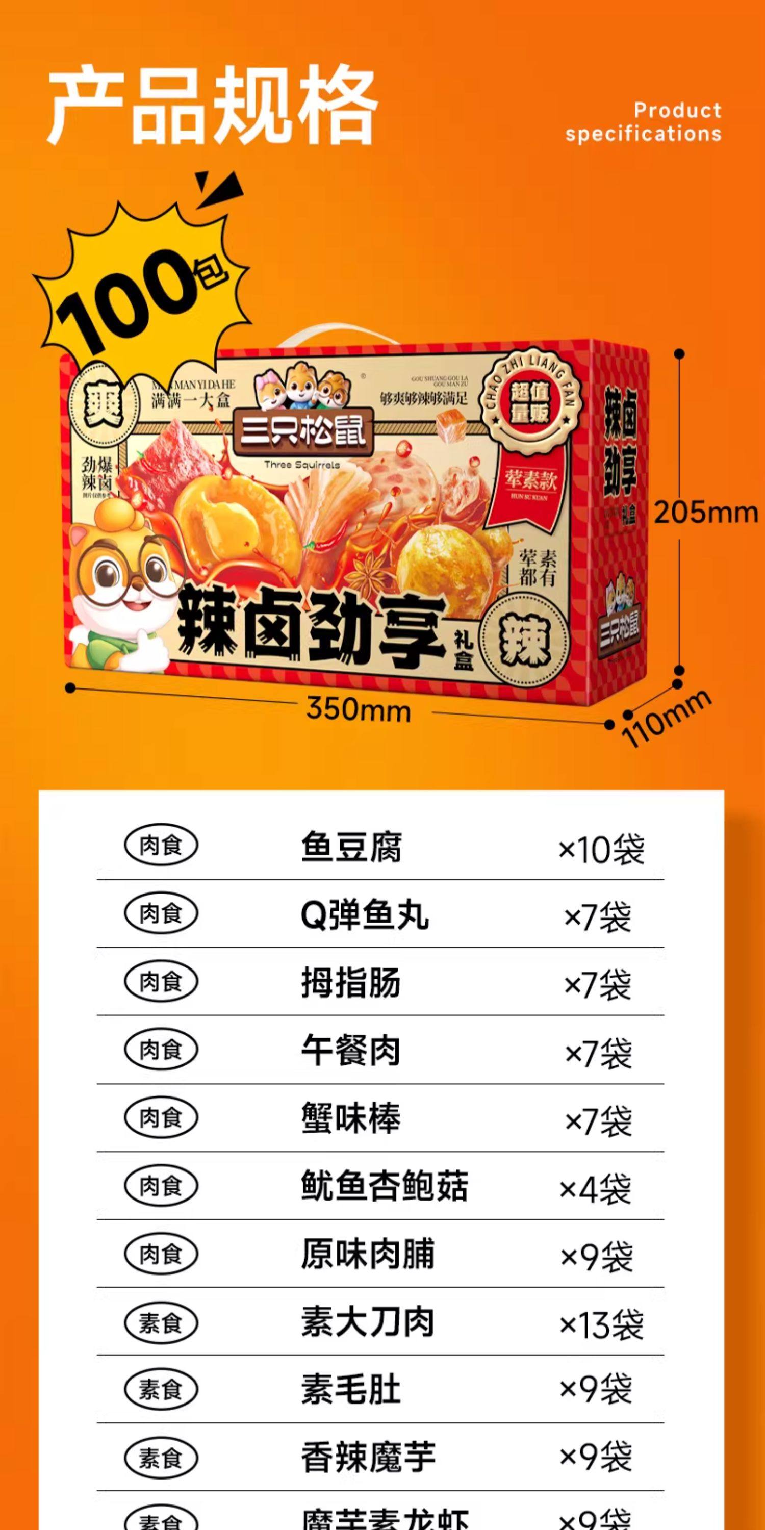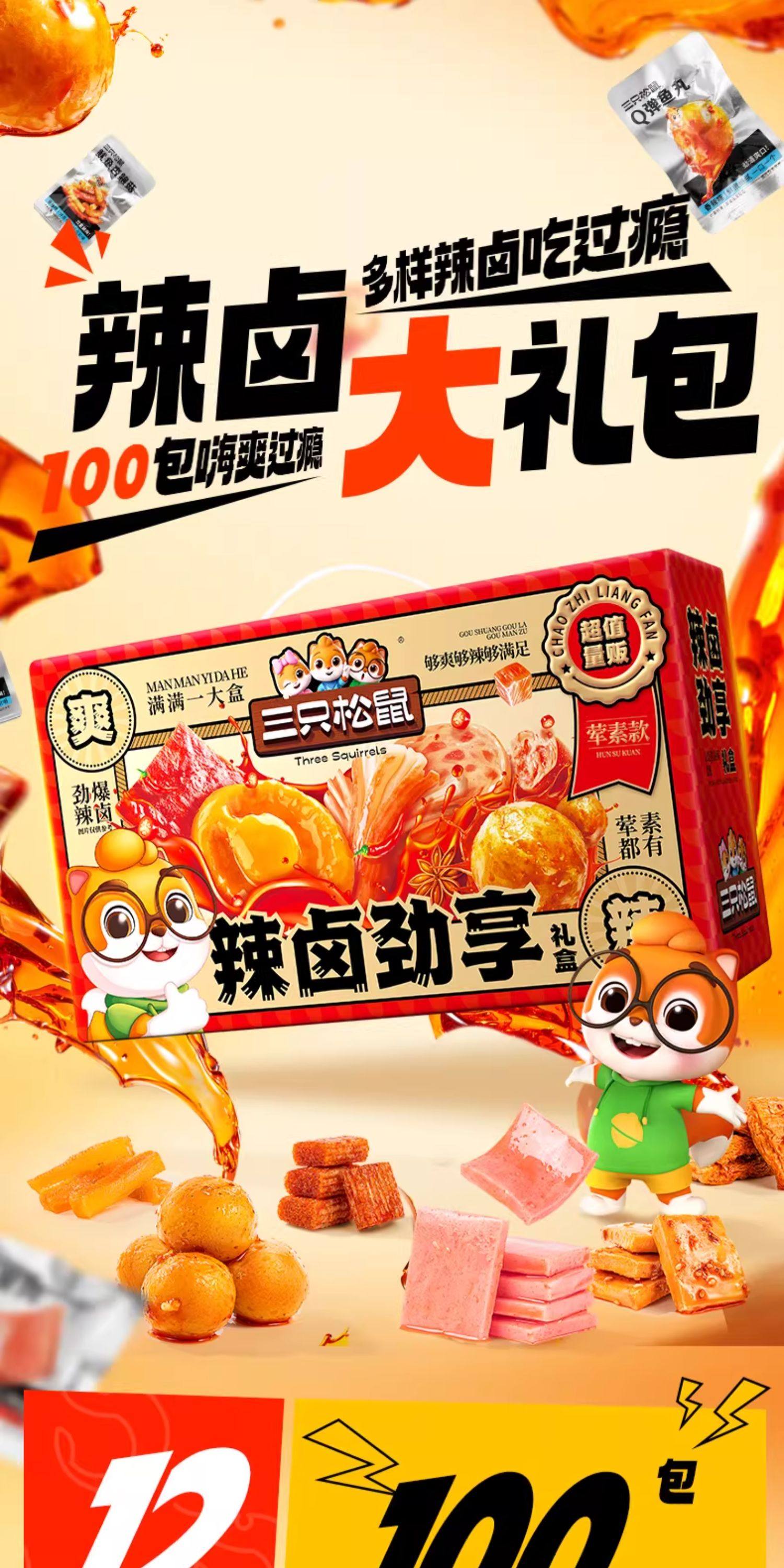 Three squirrels, 100 packs of spicy braised gifts, a whole box of braised meat, and a snack, a night snack outing, to satisfy cravings