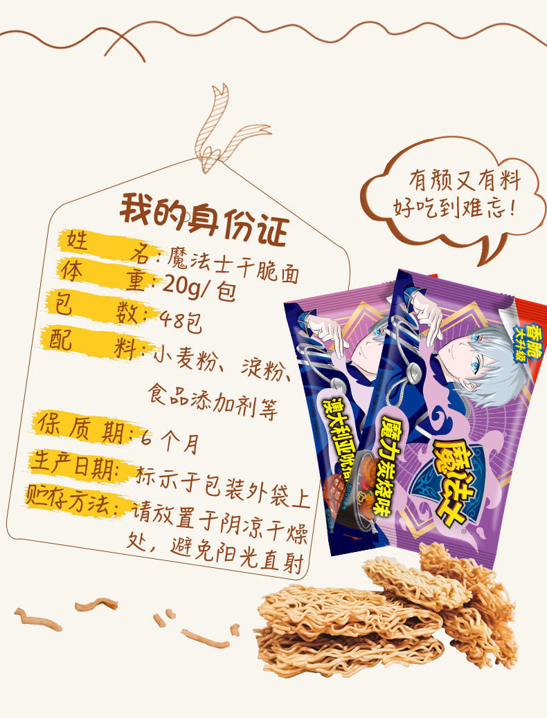 Magician 20g Dry Crispy Noodles Children's Snack Gift Pack Snack Magician Hunger Satisfying Dry Noodle Food Whole Box