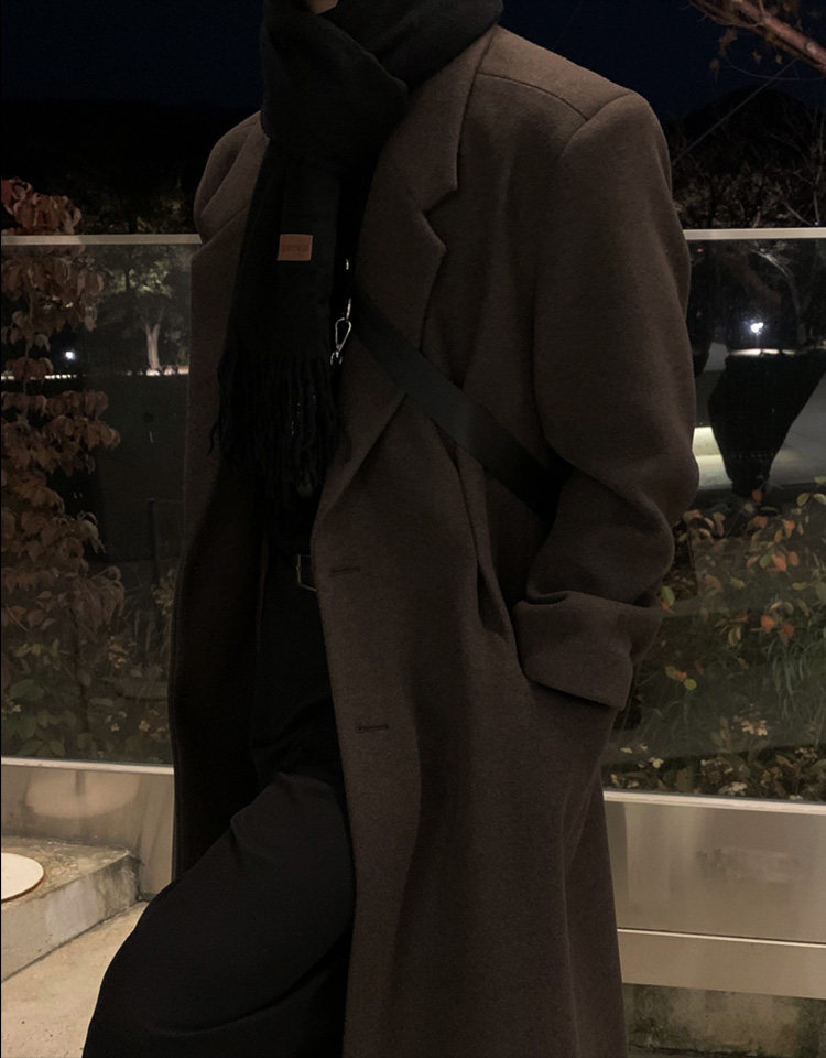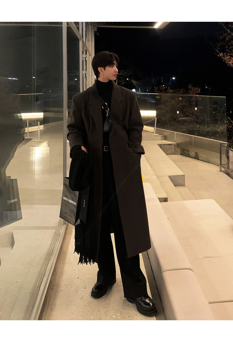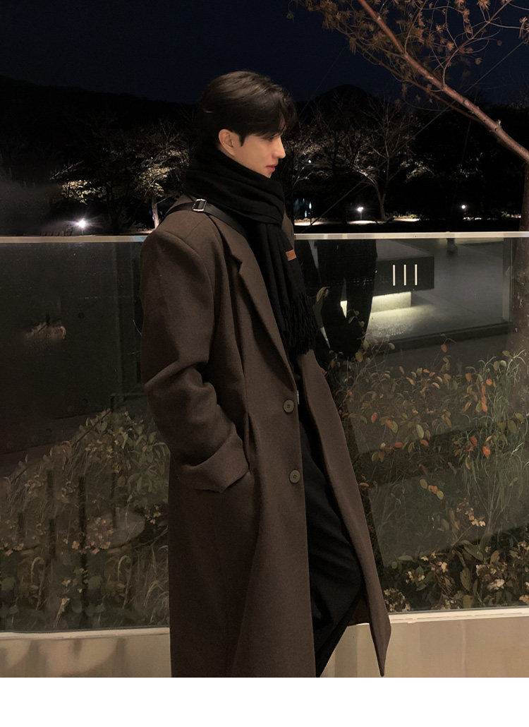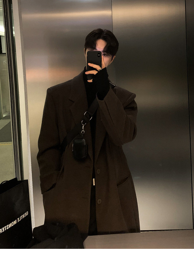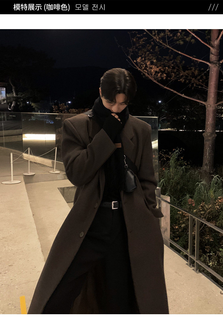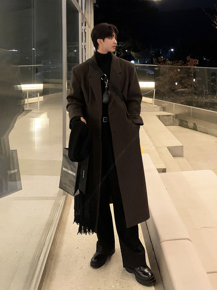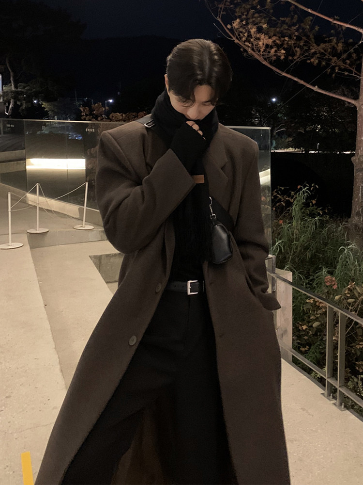 Winter Korean version Maillard woolen coat men's high-end mid-length shoulder padded trench coat over the knee loose woolen jacket