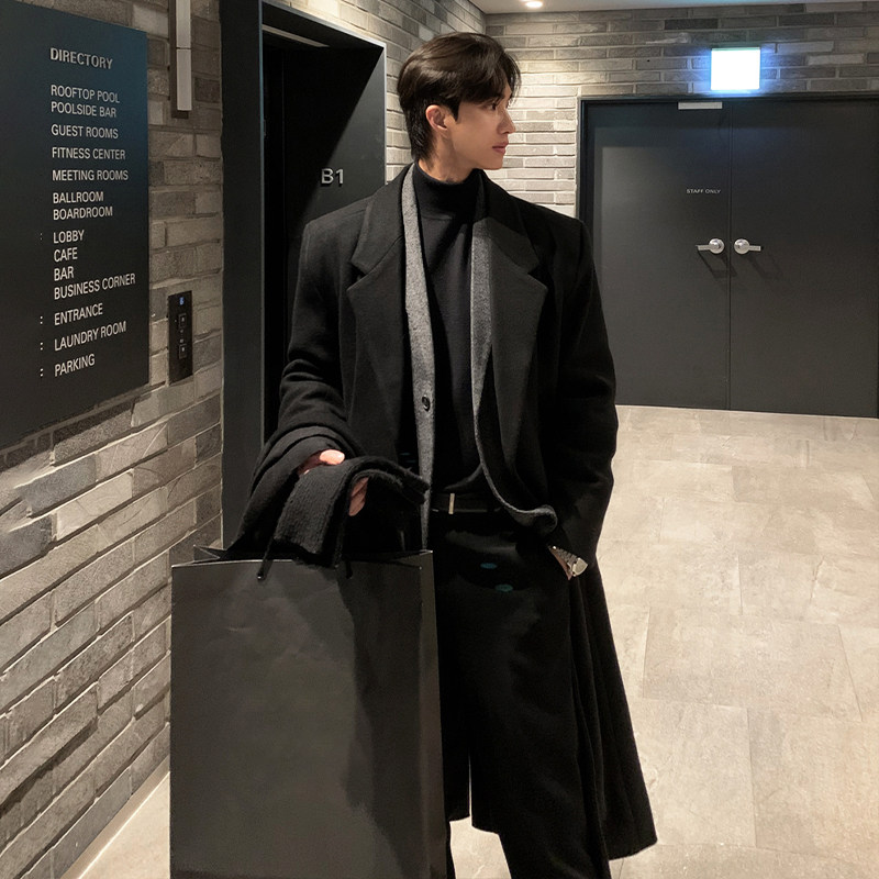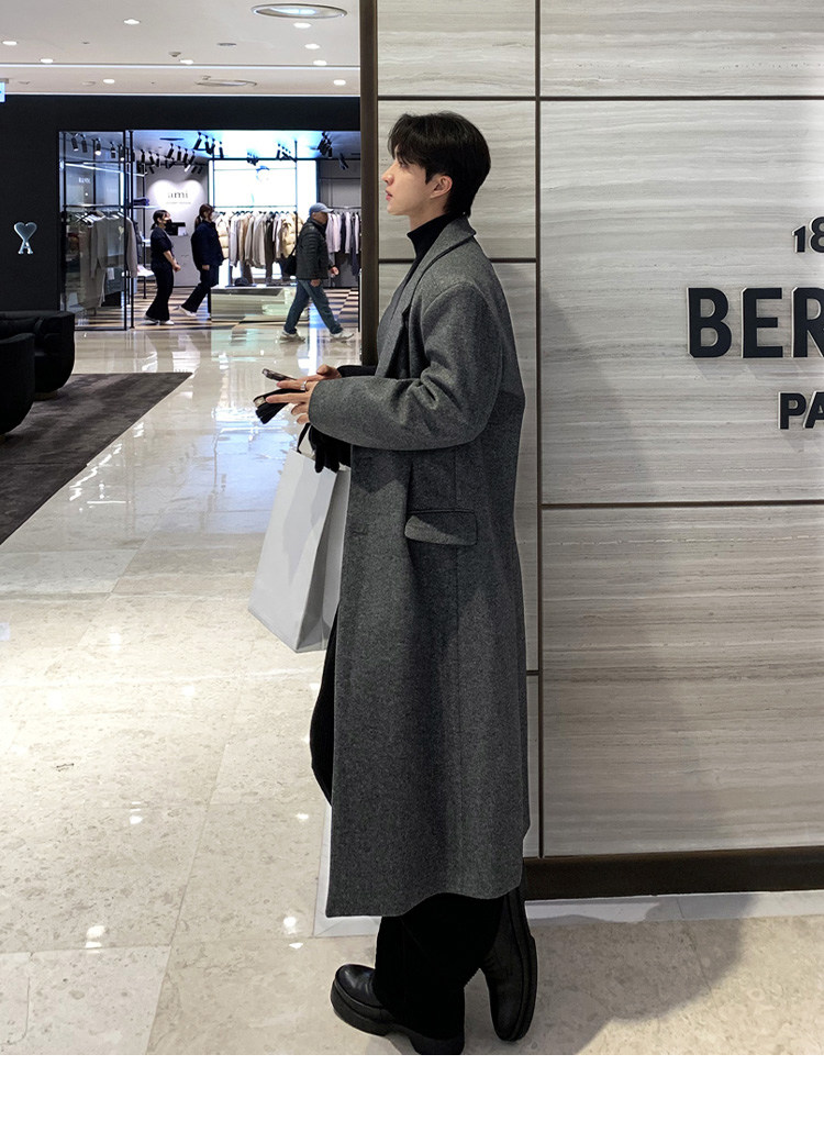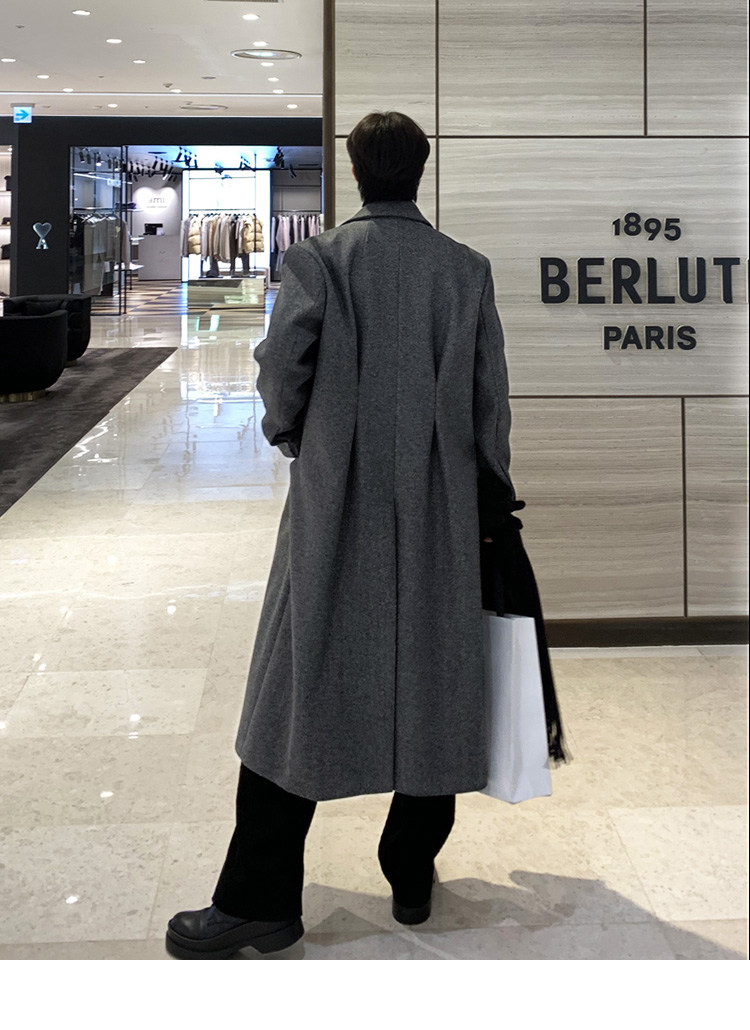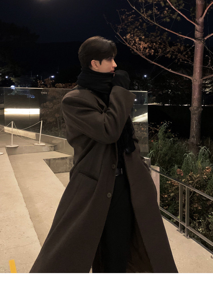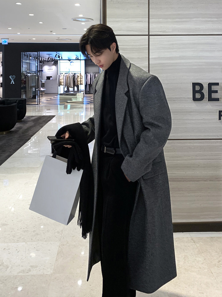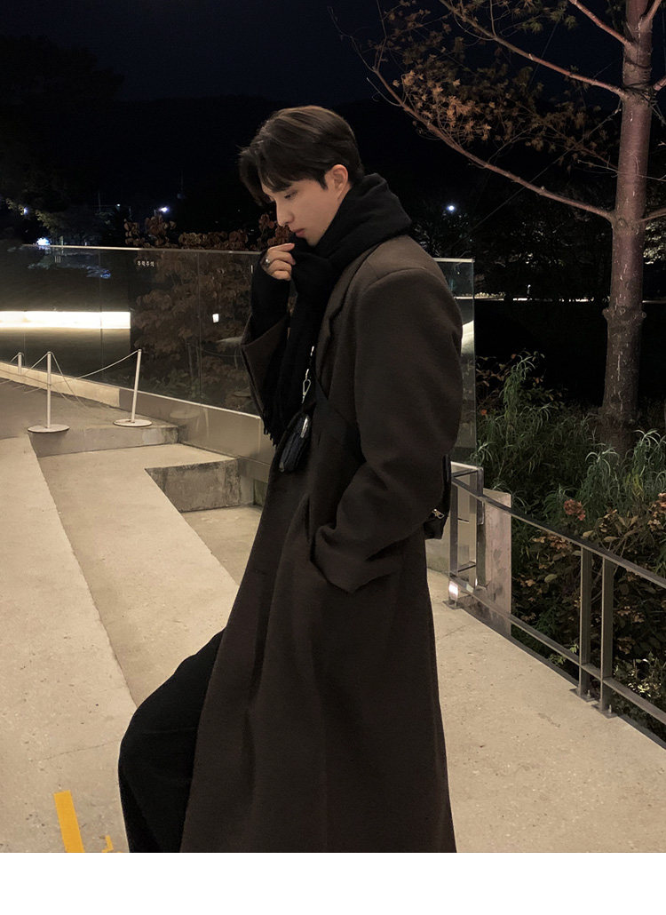 Winter Korean version Maillard woolen coat men's high-end mid-length shoulder padded trench coat over the knee loose woolen jacket