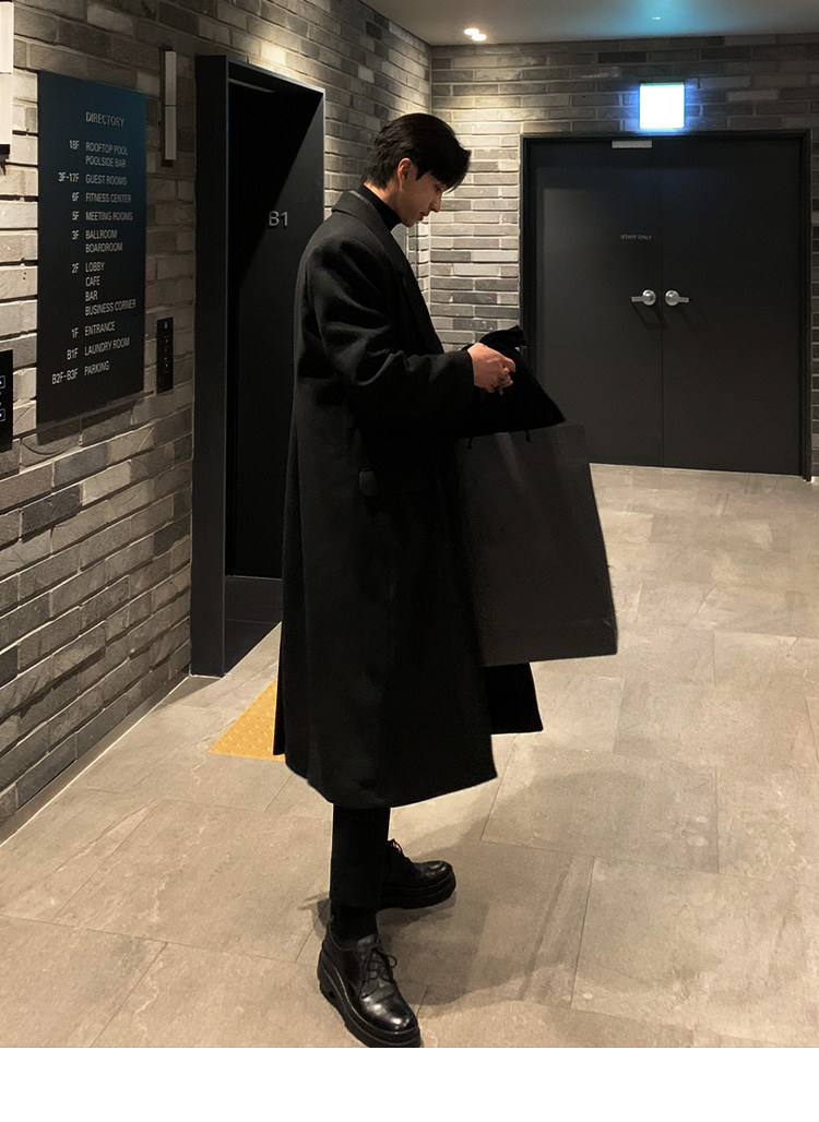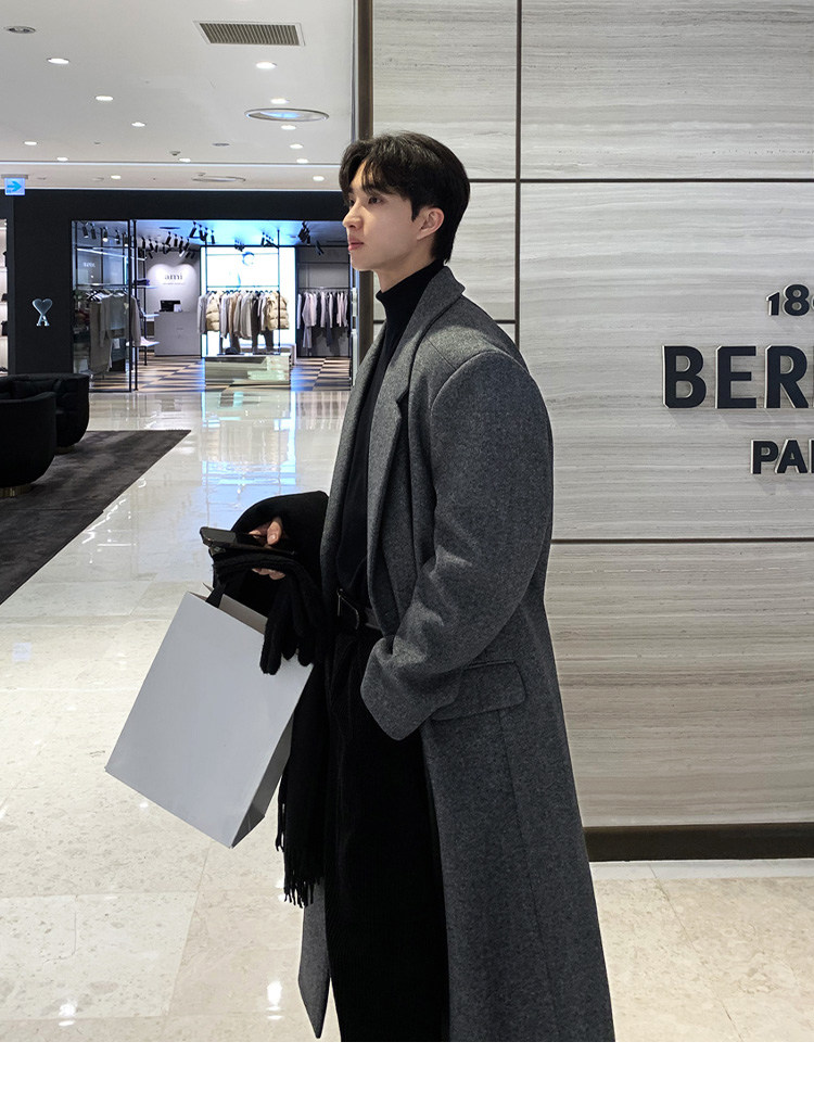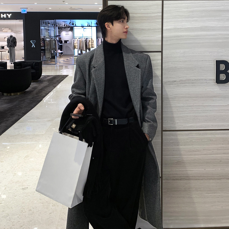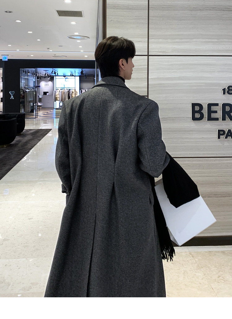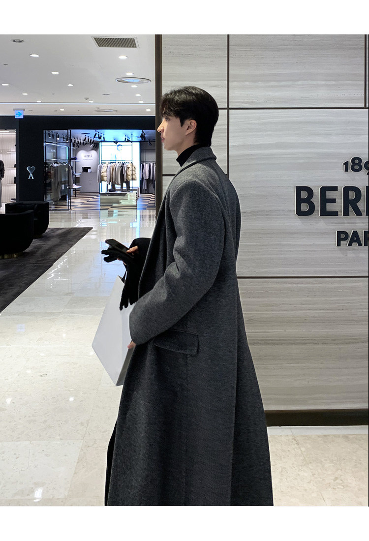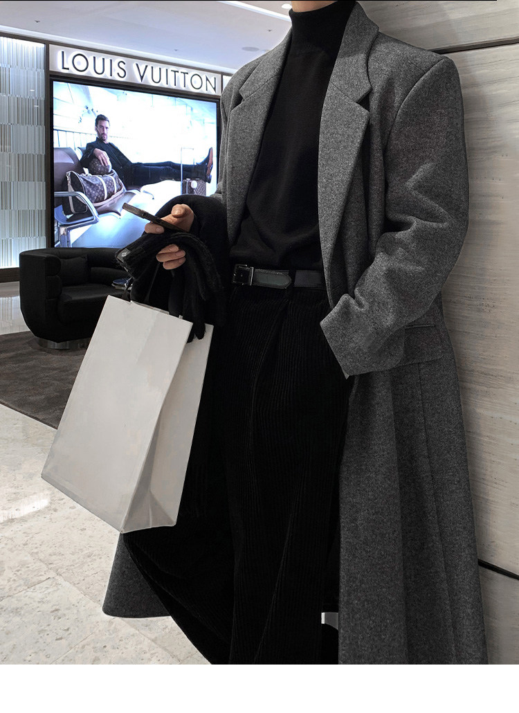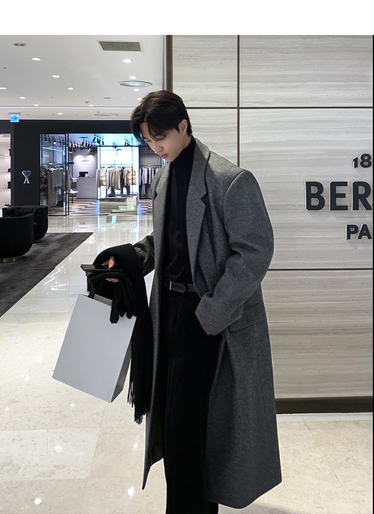 Winter Korean version Maillard woolen coat men's high-end mid-length shoulder padded trench coat over the knee loose woolen jacket