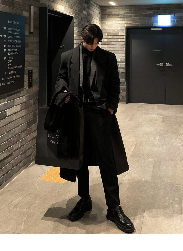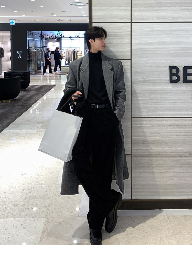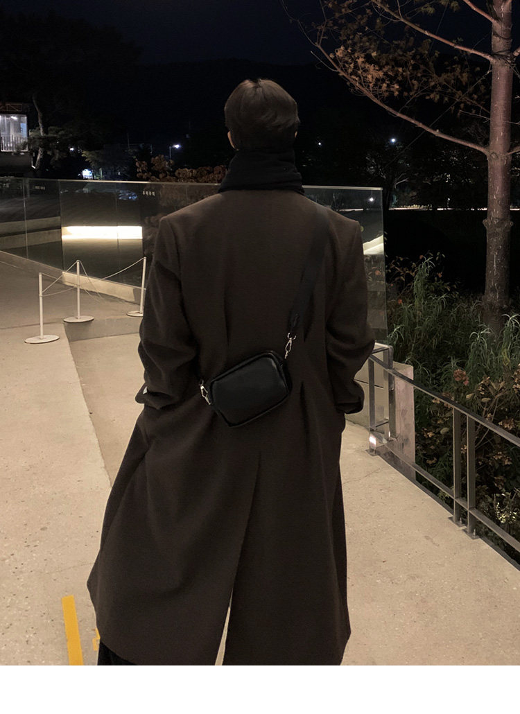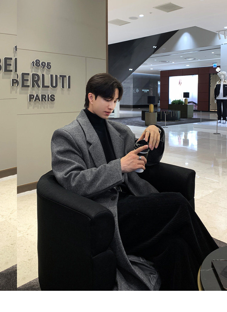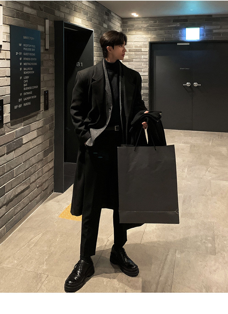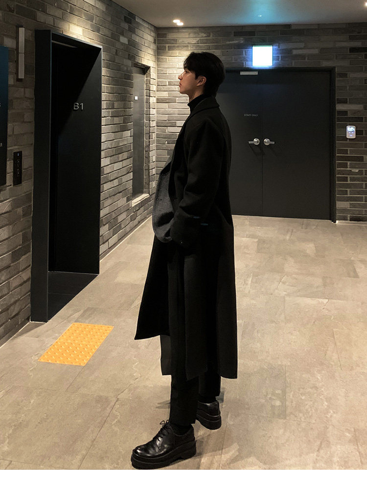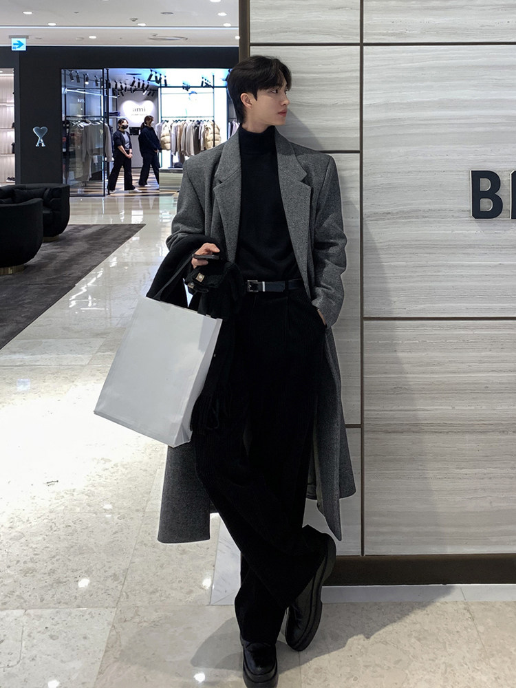 Winter Korean version Maillard woolen coat men's high-end mid-length shoulder padded trench coat over the knee loose woolen jacket