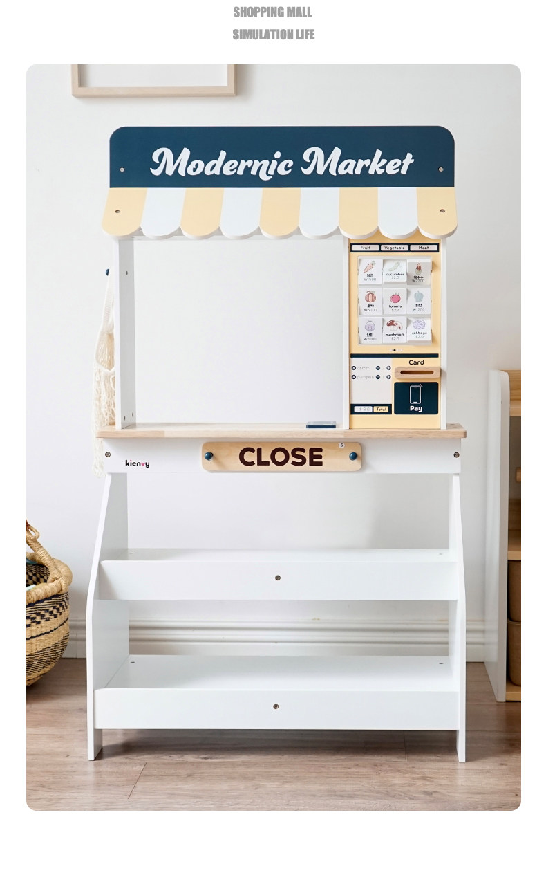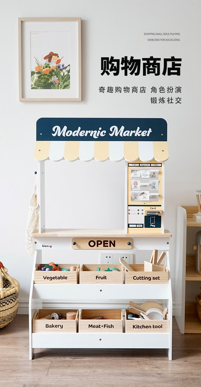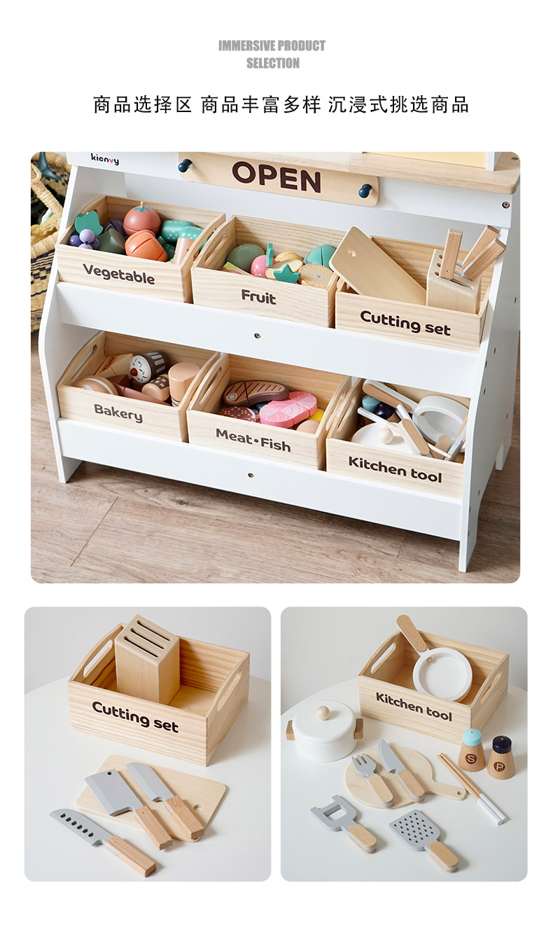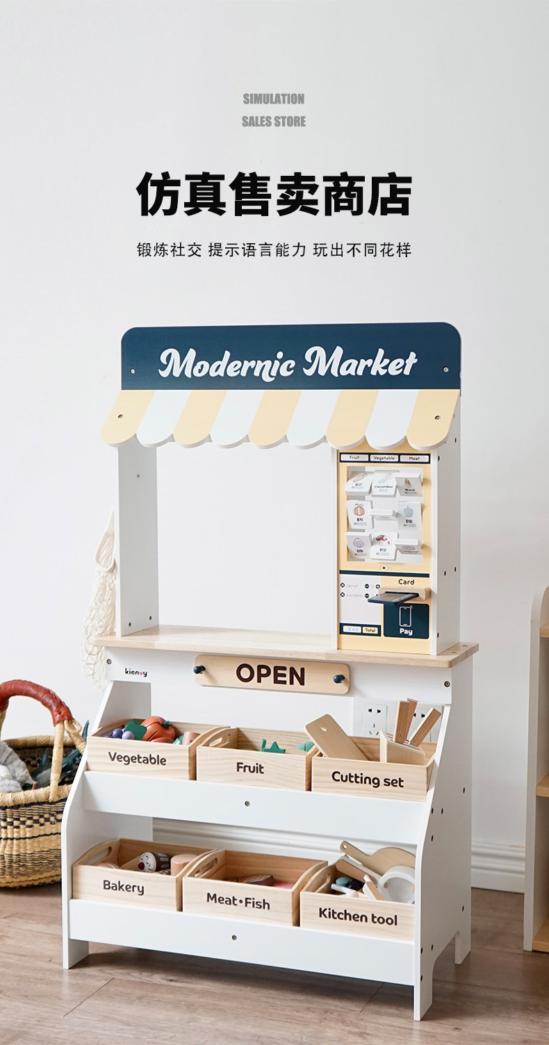Children's kiosk, toys, supermarket, cash register, counter, simulated kitchen, baby playhouse, food, wooden doll's house