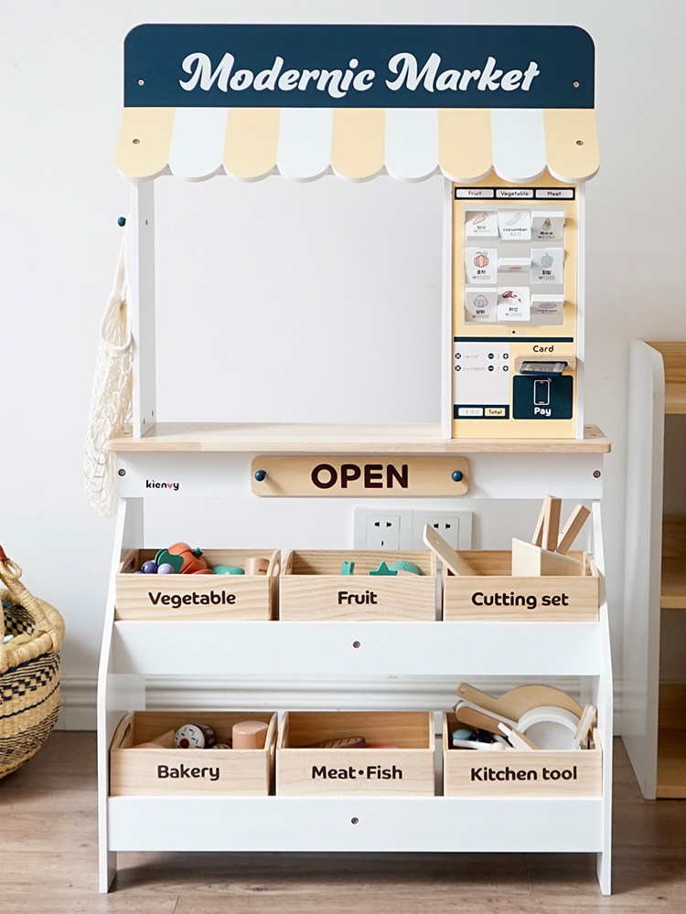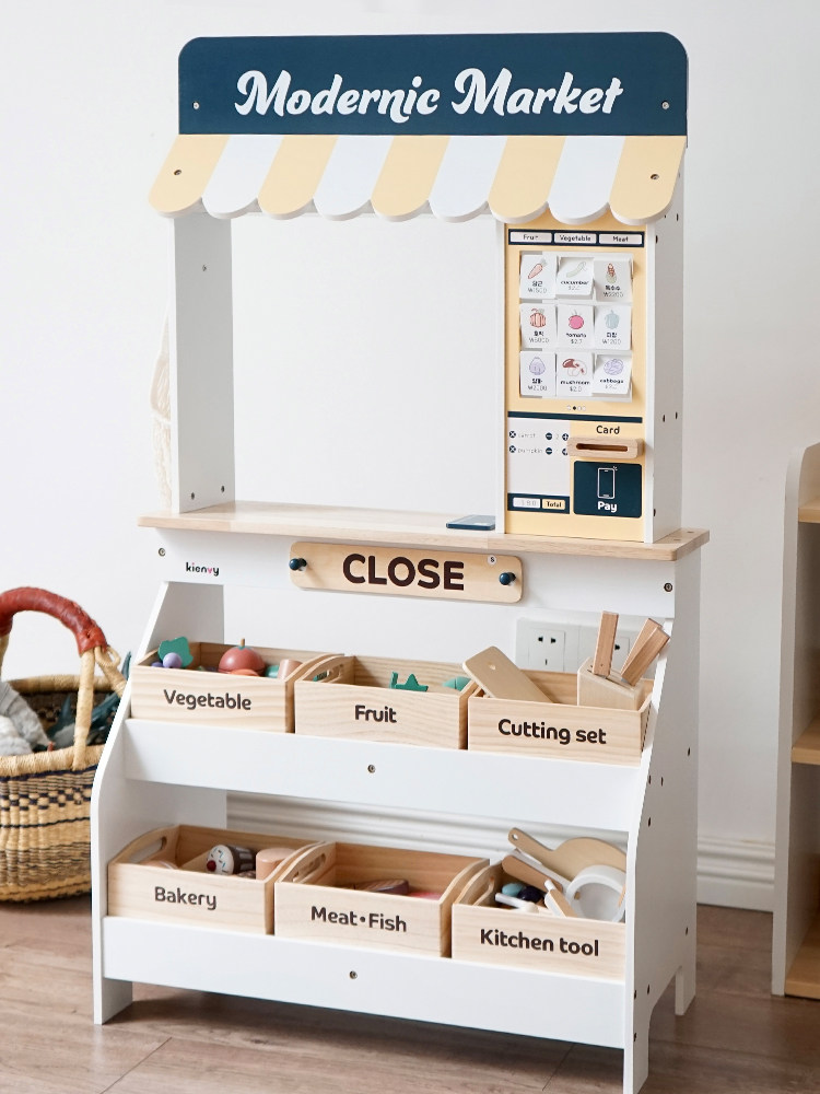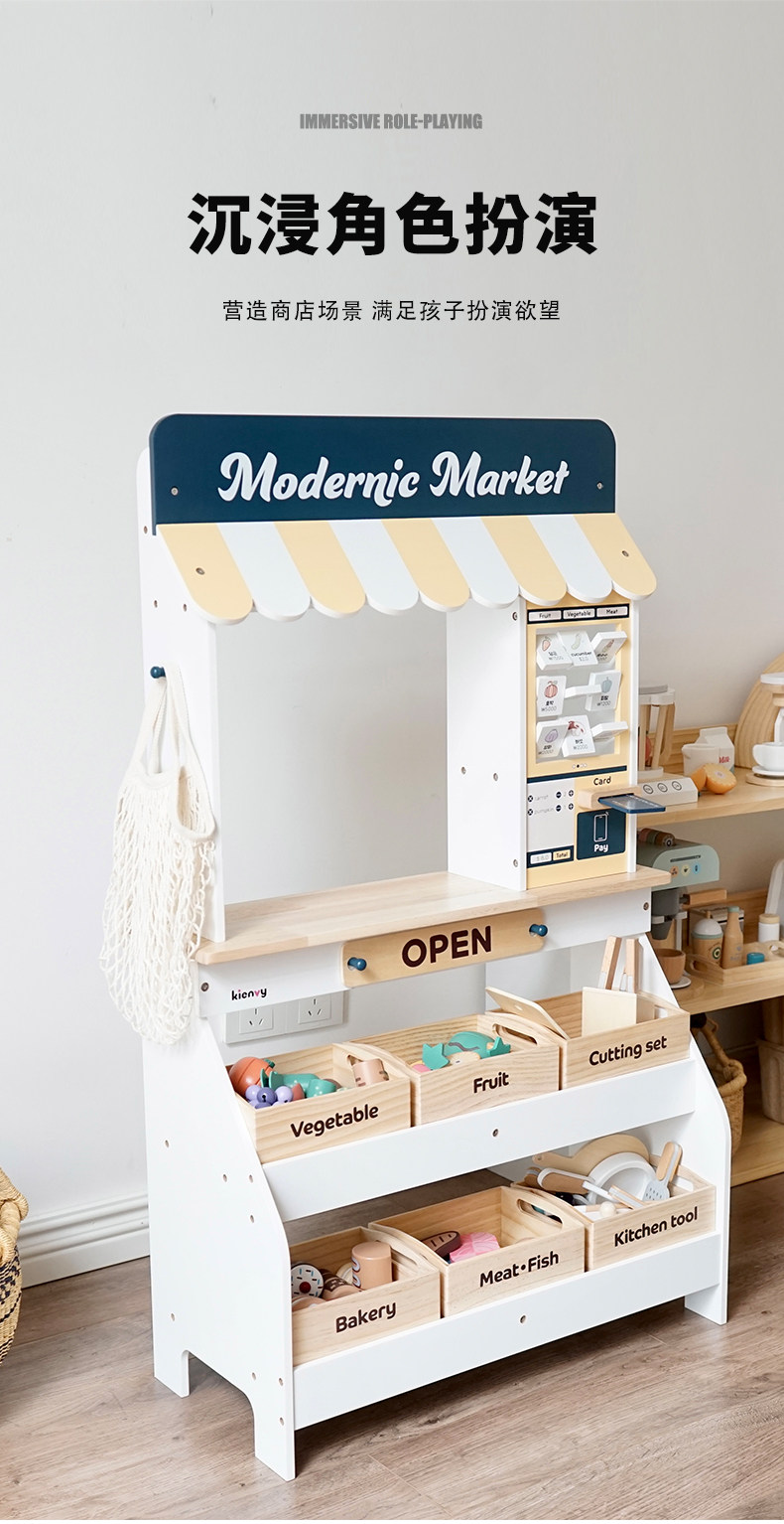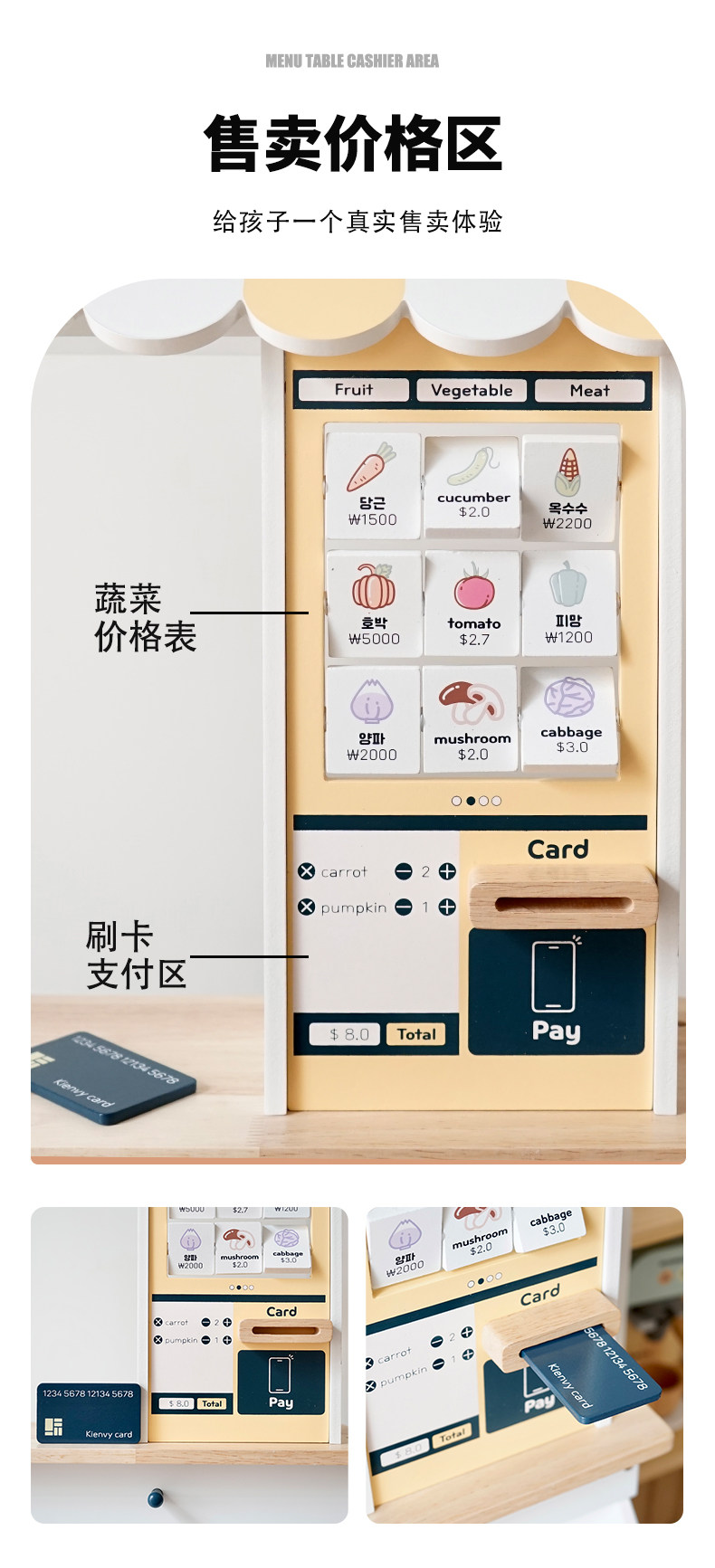 Children's kiosk, toys, supermarket, cash register, counter, simulated kitchen, baby playhouse, food, wooden doll's house