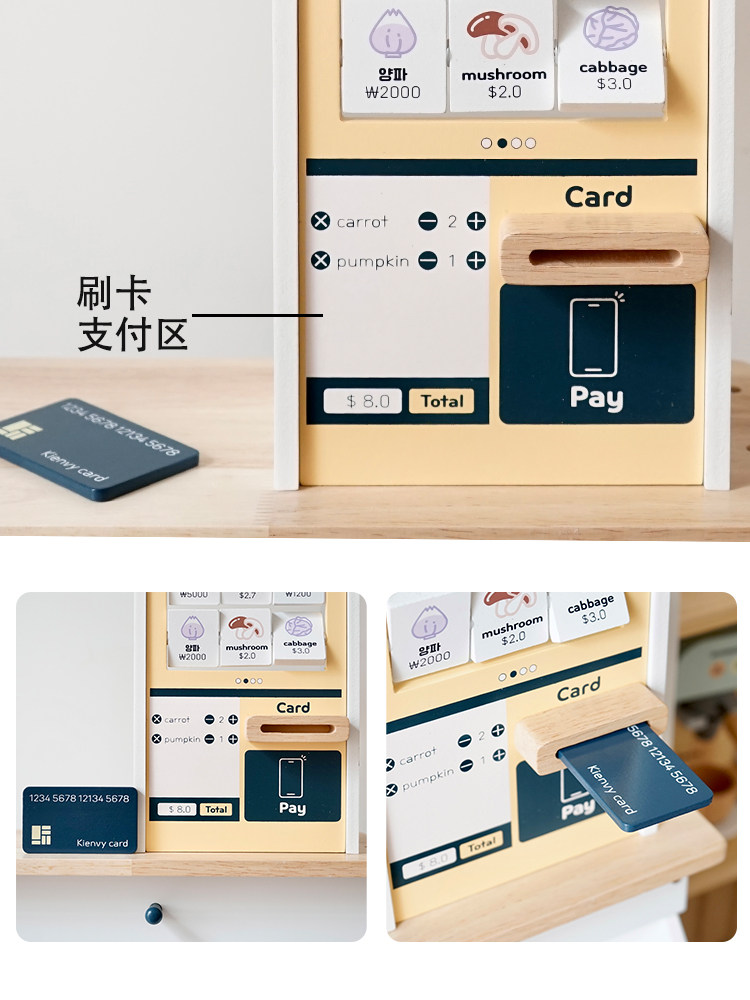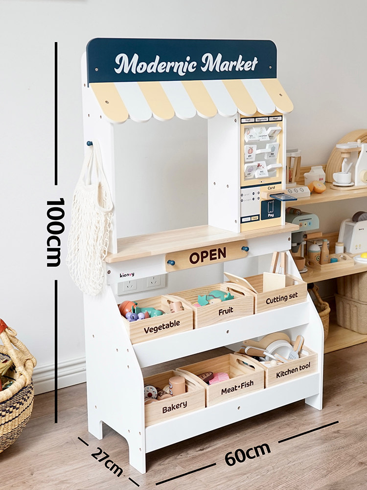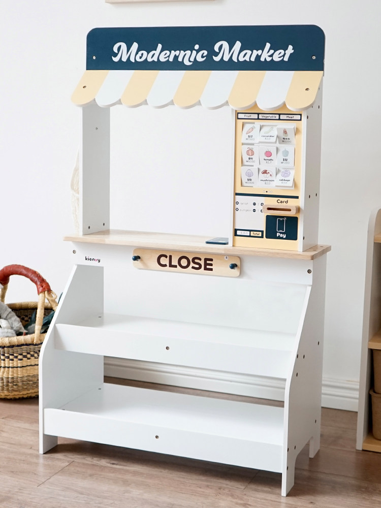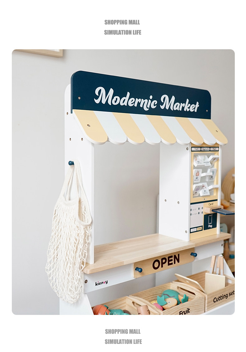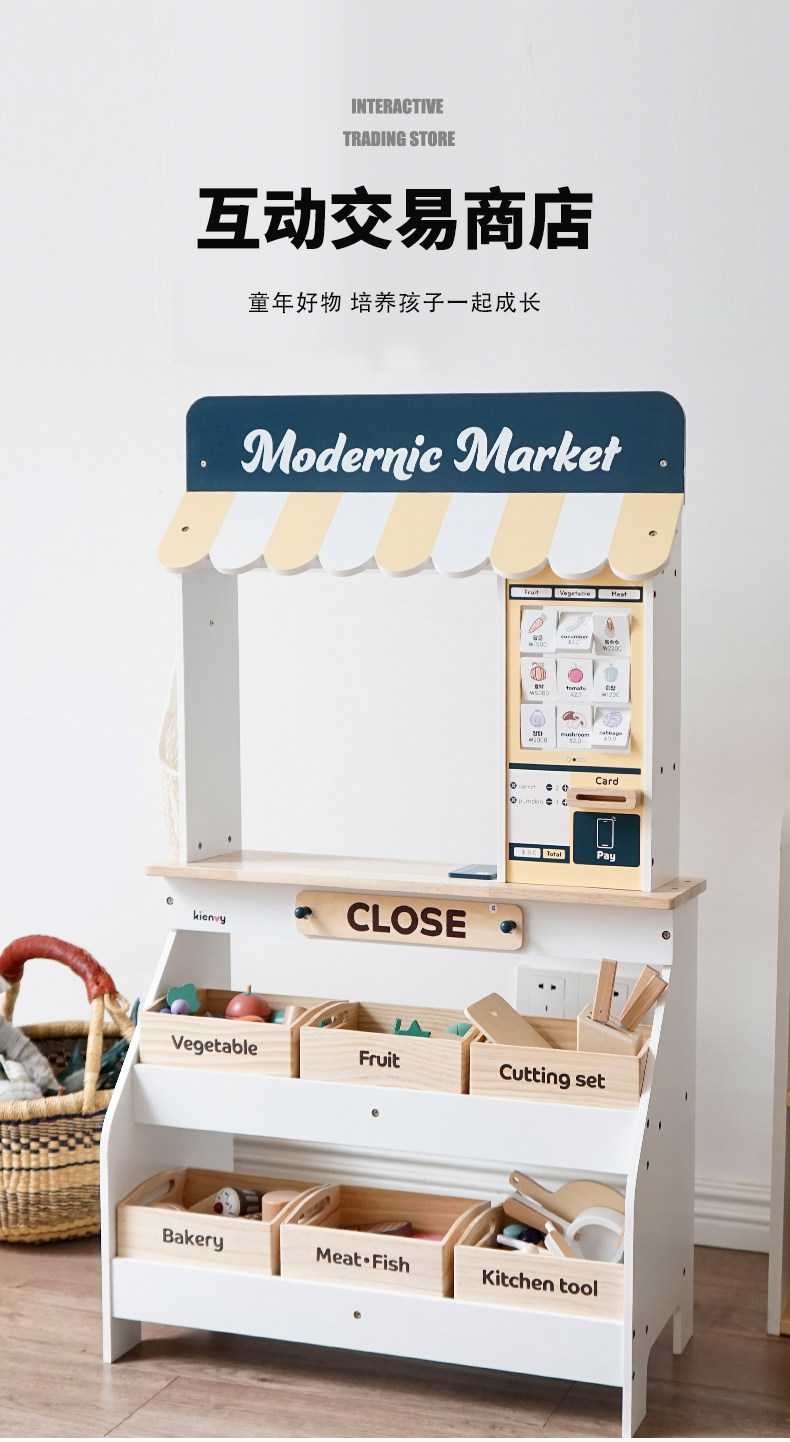 Children's kiosk, toys, supermarket, cash register, counter, simulated kitchen, baby playhouse, food, wooden doll's house