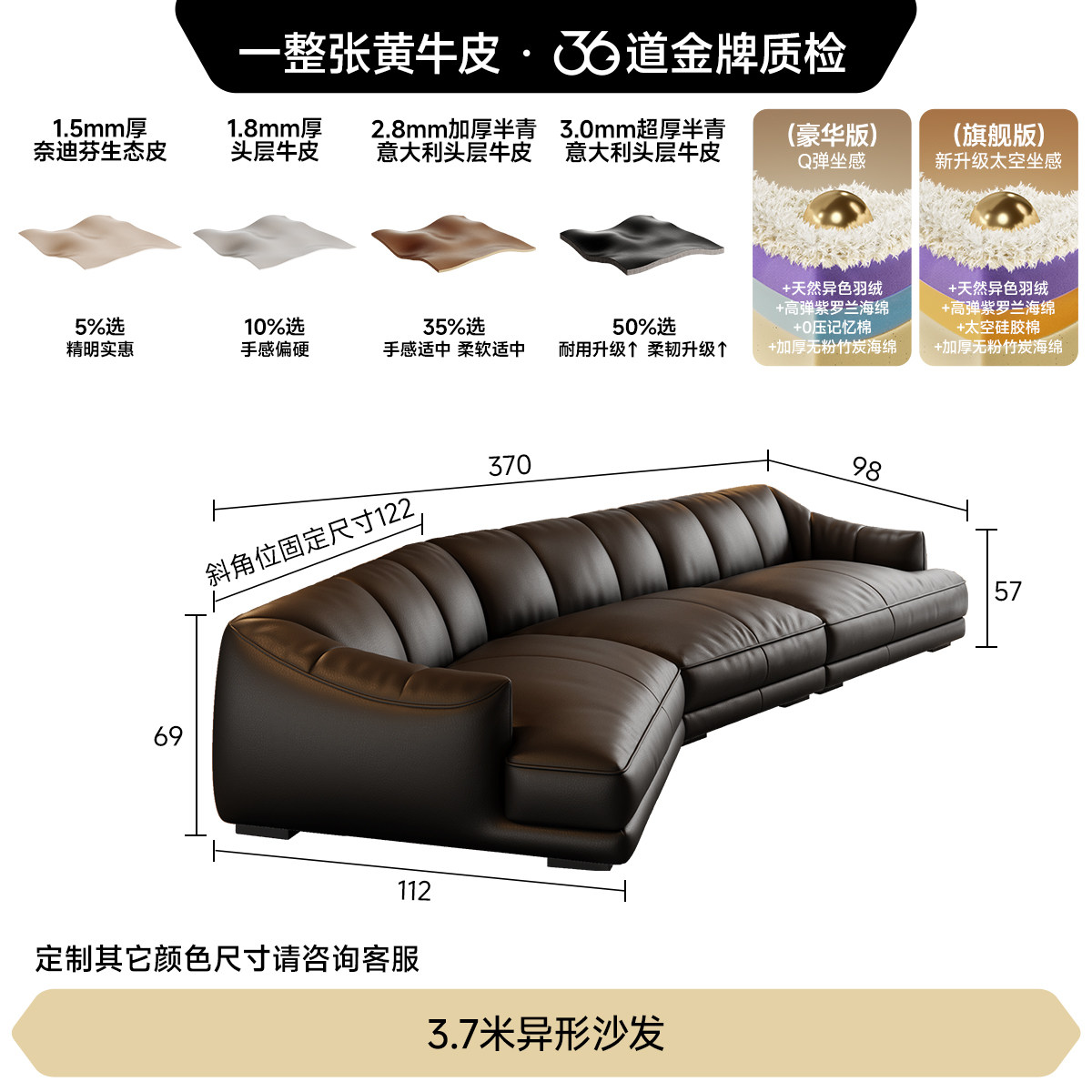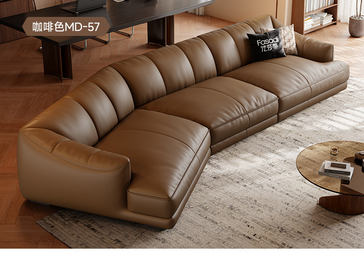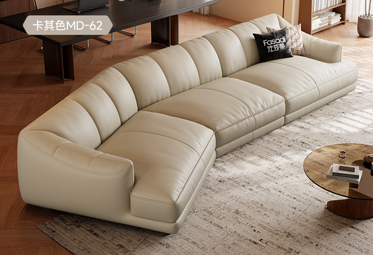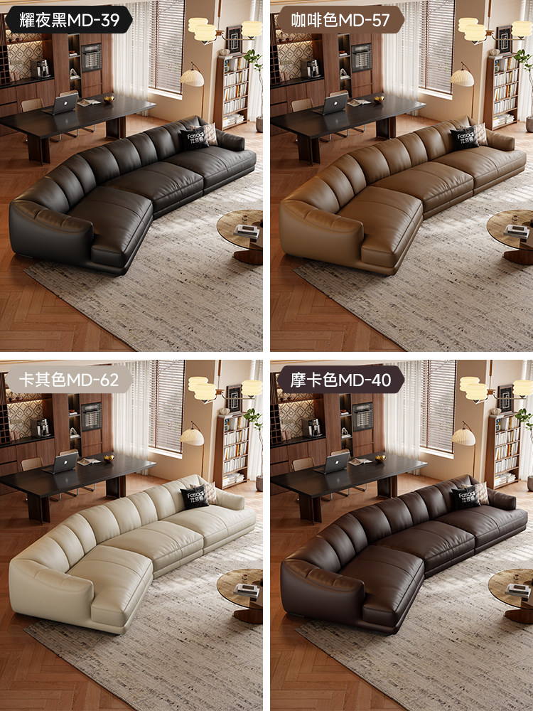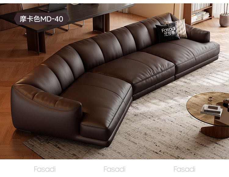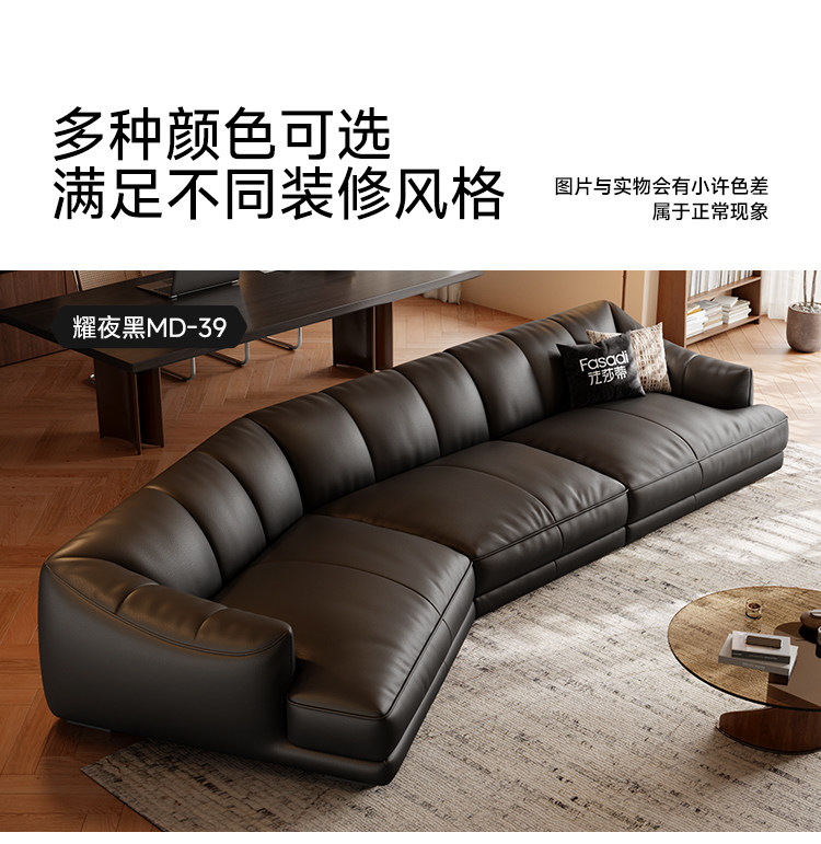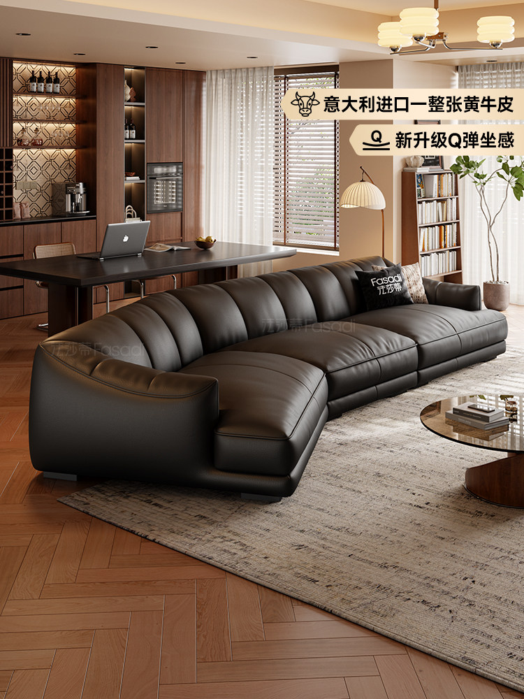 Fasati modern simple leather sofa top layer cowhide high-end black curved corner small apartment special-shaped sofa