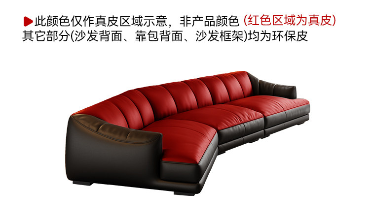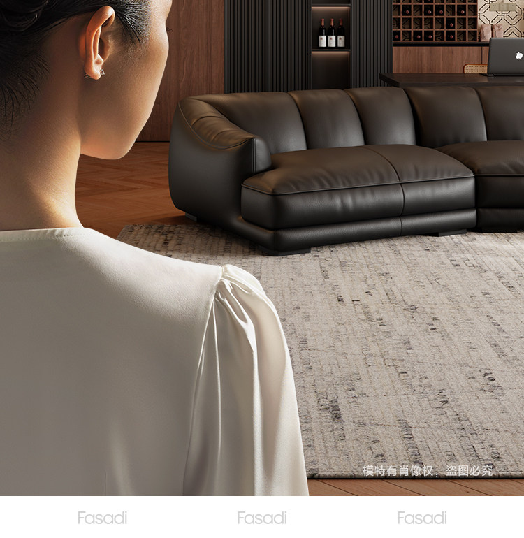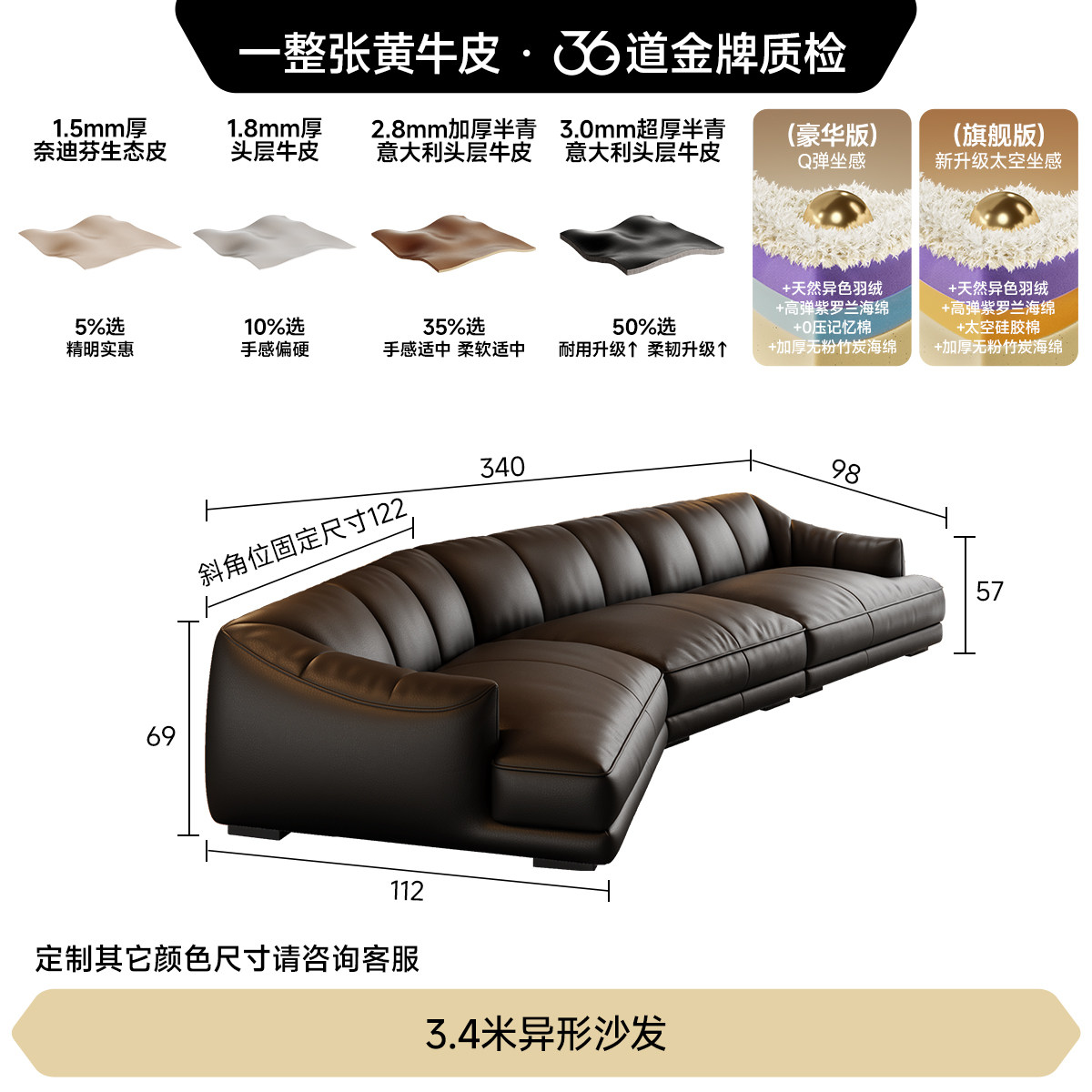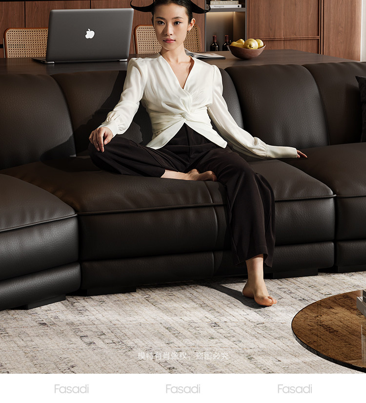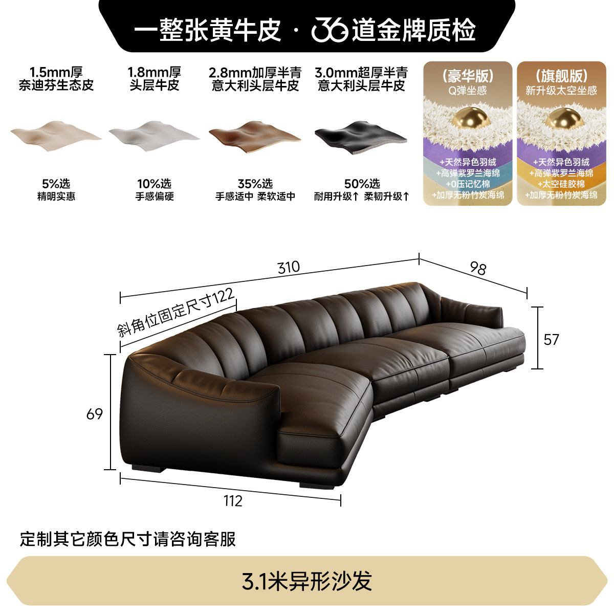 Fasati modern simple leather sofa top layer cowhide high-end black curved corner small apartment special-shaped sofa