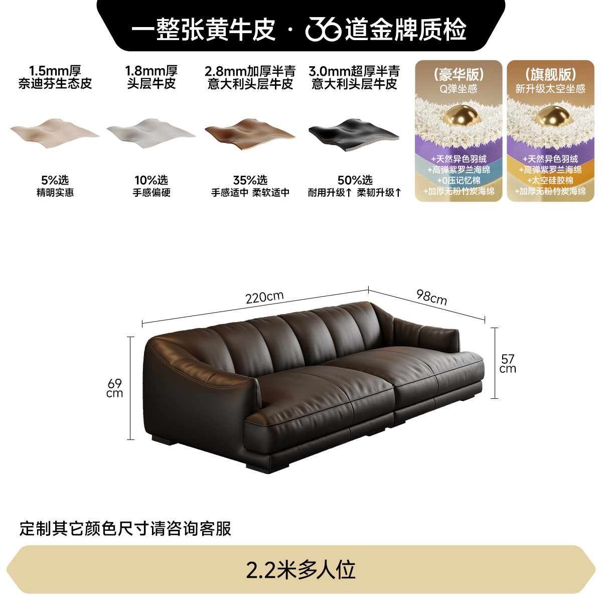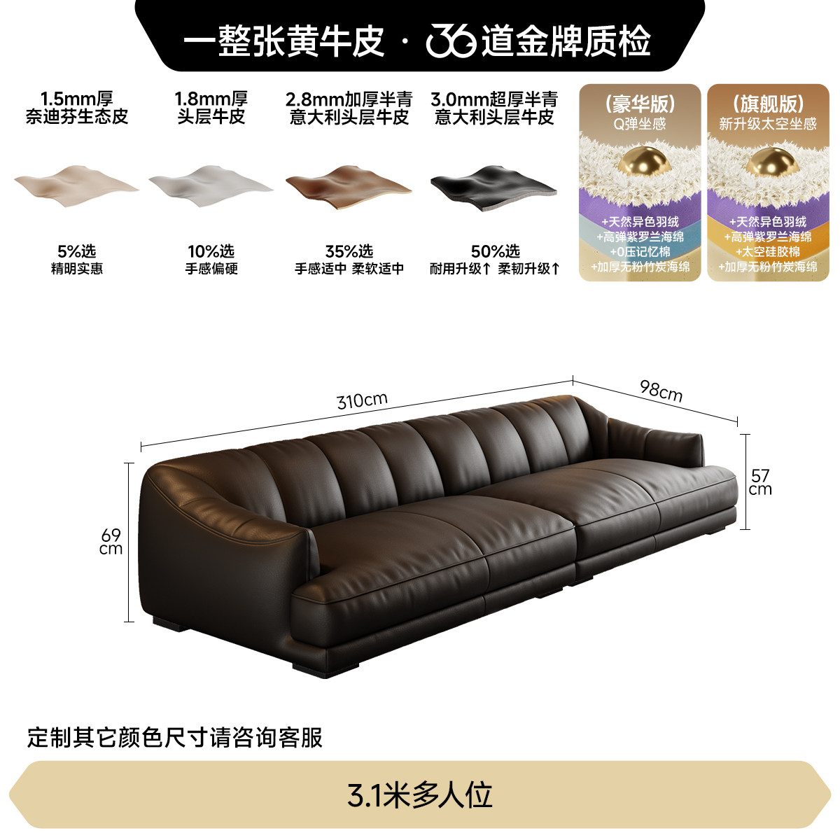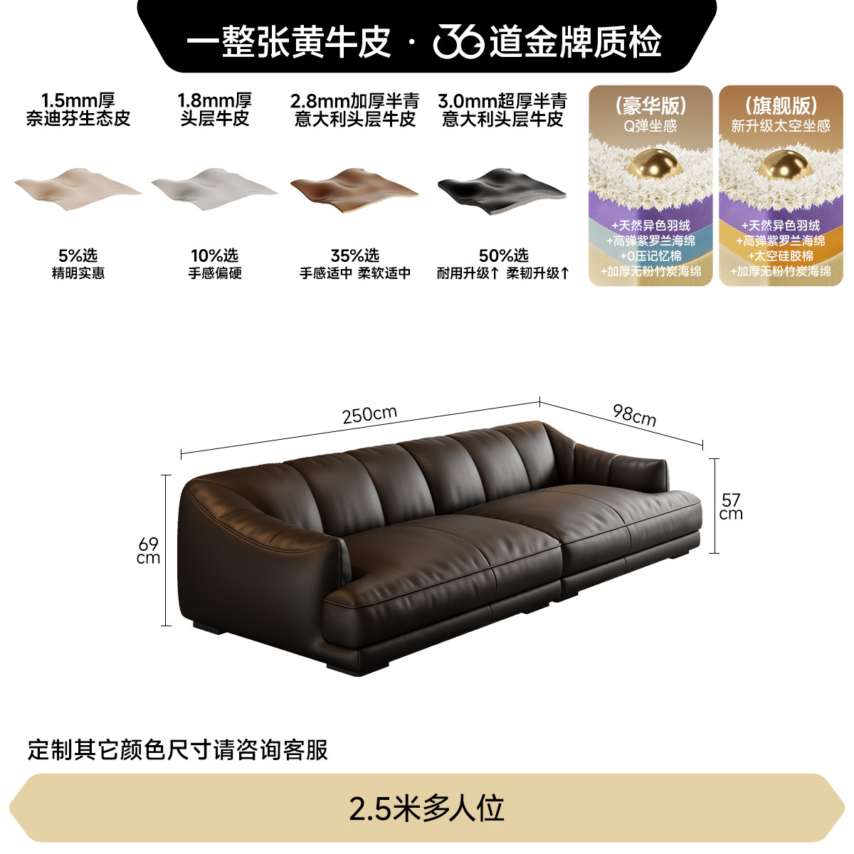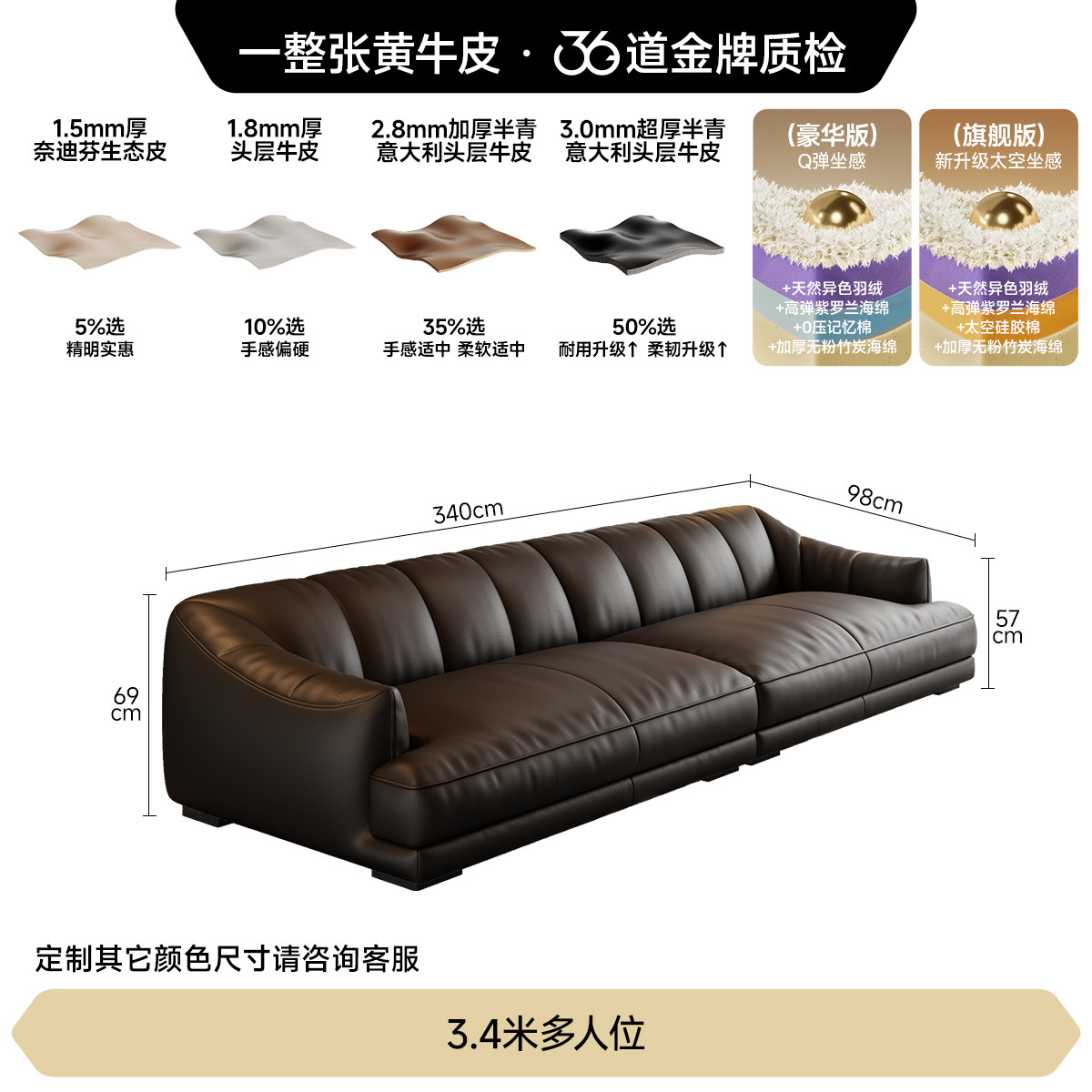 Fasati modern simple leather sofa top layer cowhide high-end black curved corner small apartment special-shaped sofa