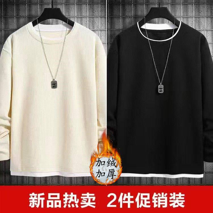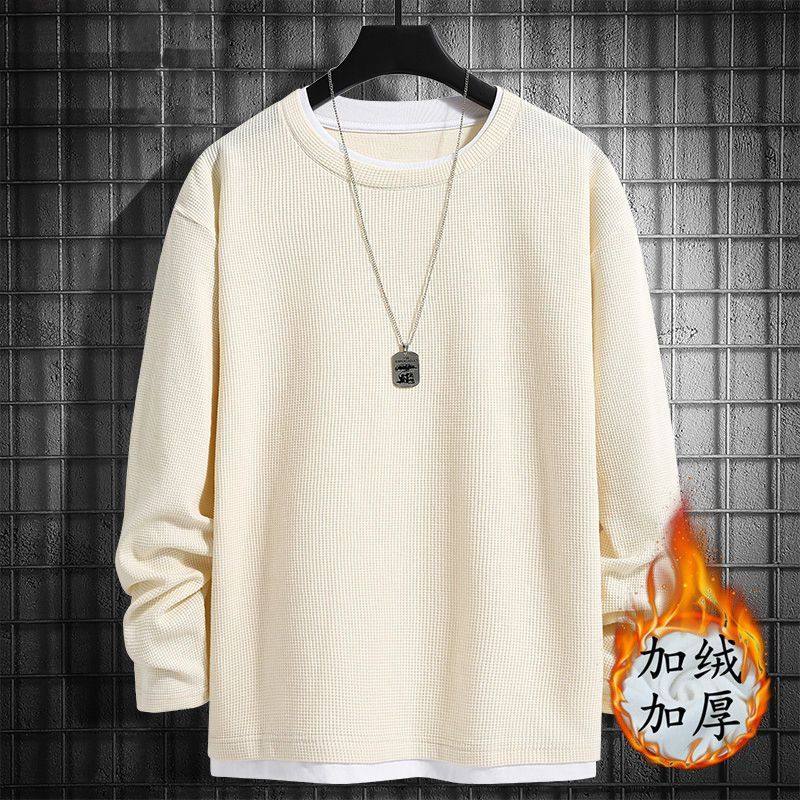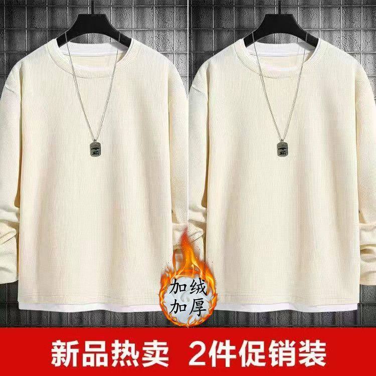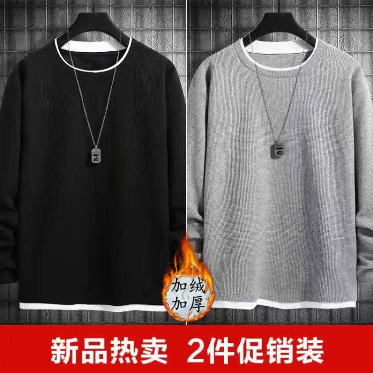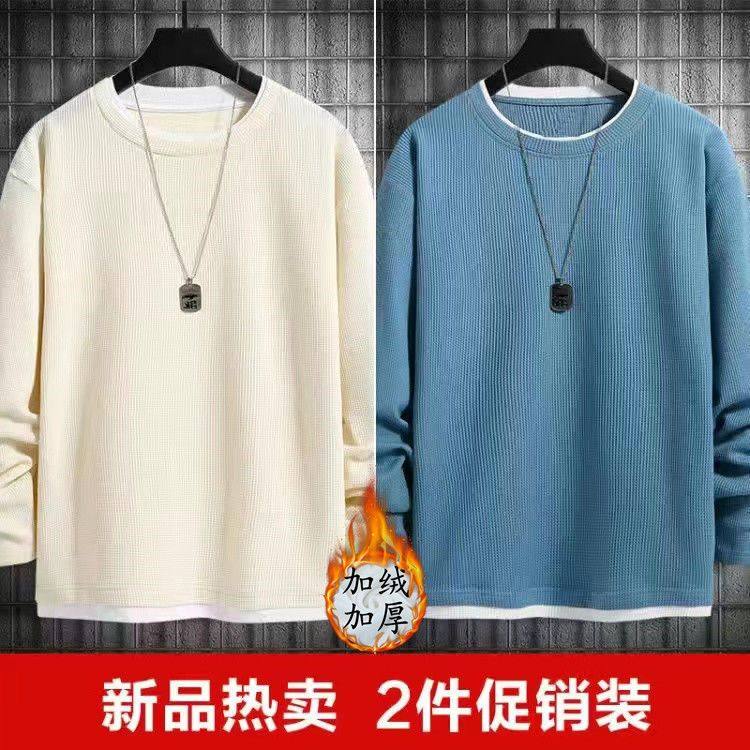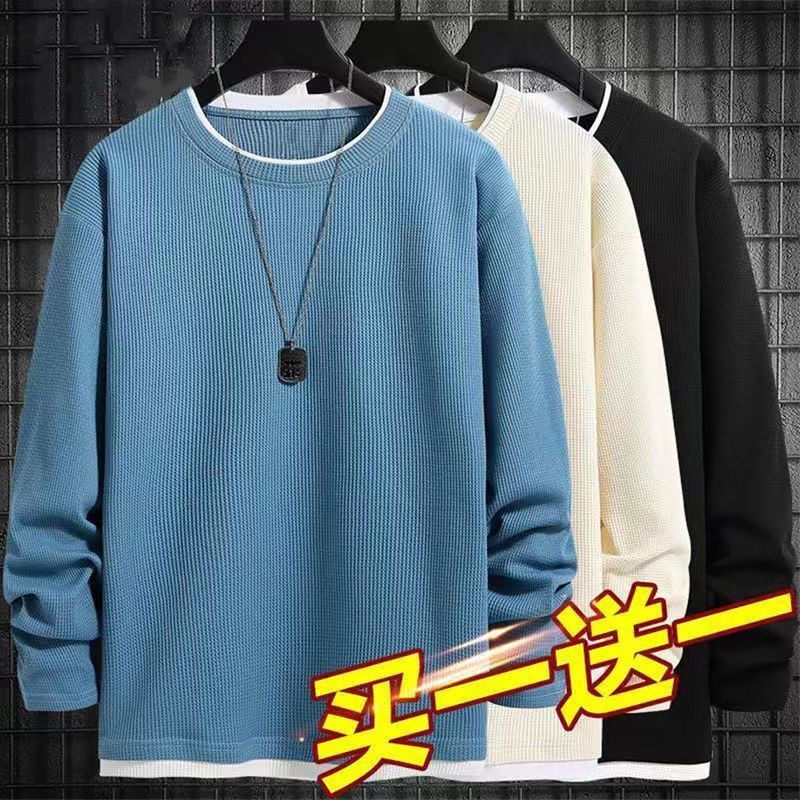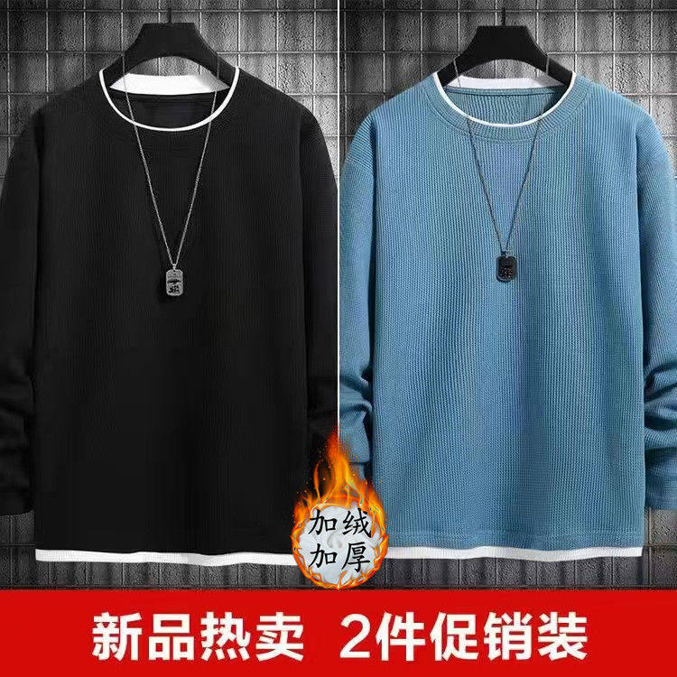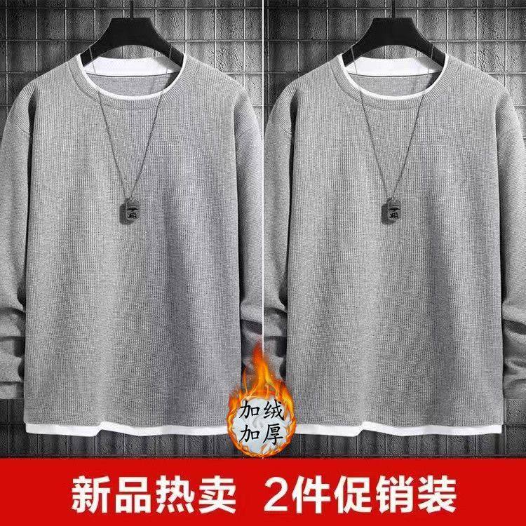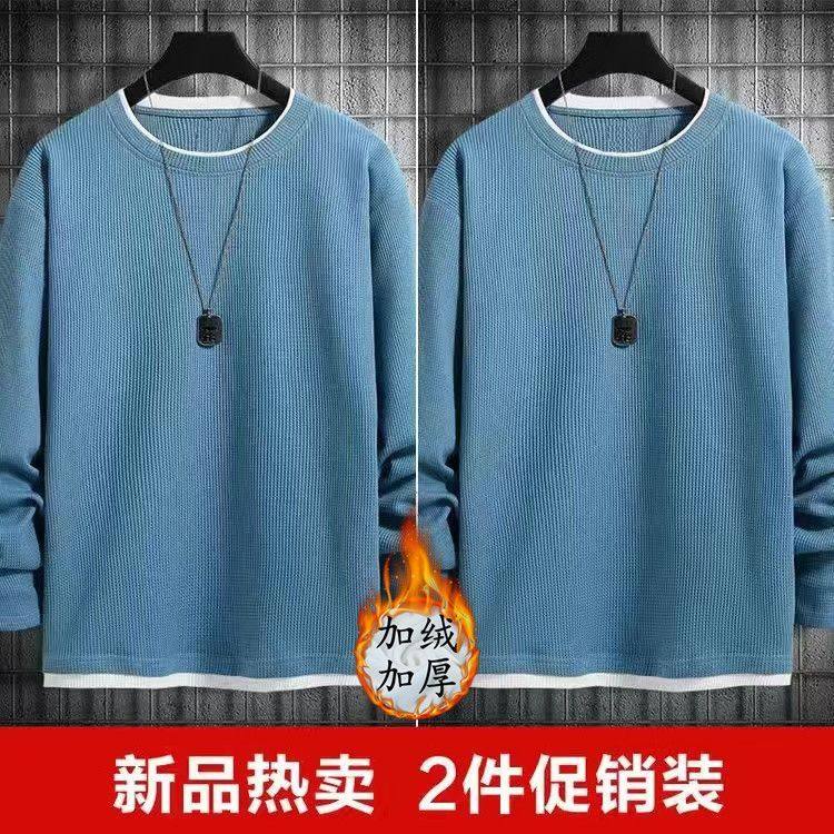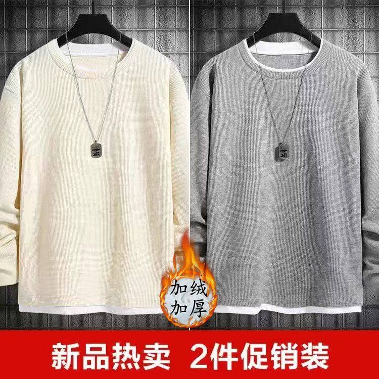 Clearance pick up leaky fakes, two waffle long-sleeved T-shirts, men's autumn and winter loose plus-size plus-size plush pullovers, sweatshirts, jackets, trends