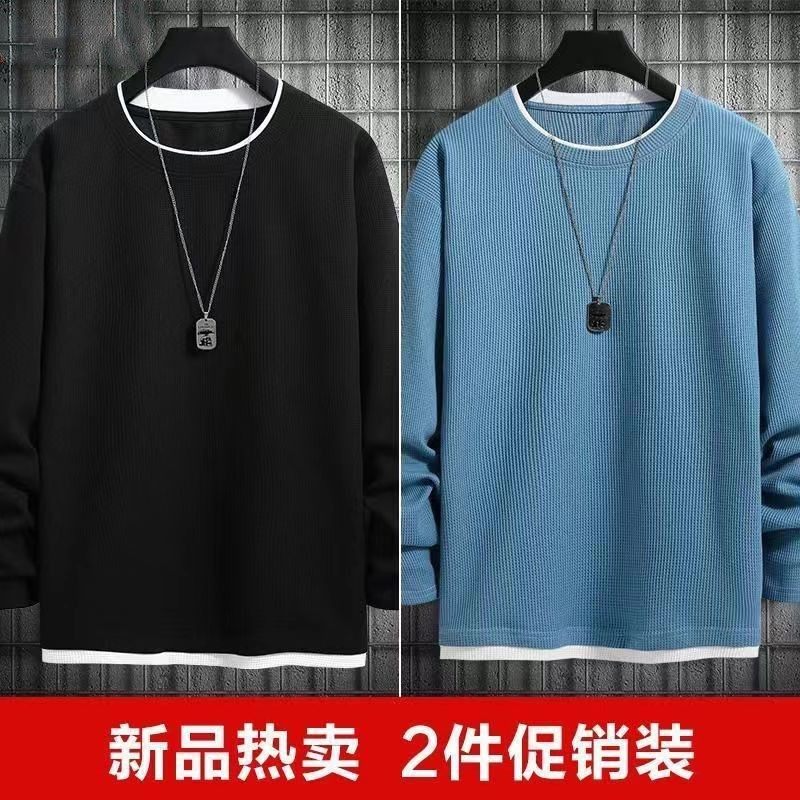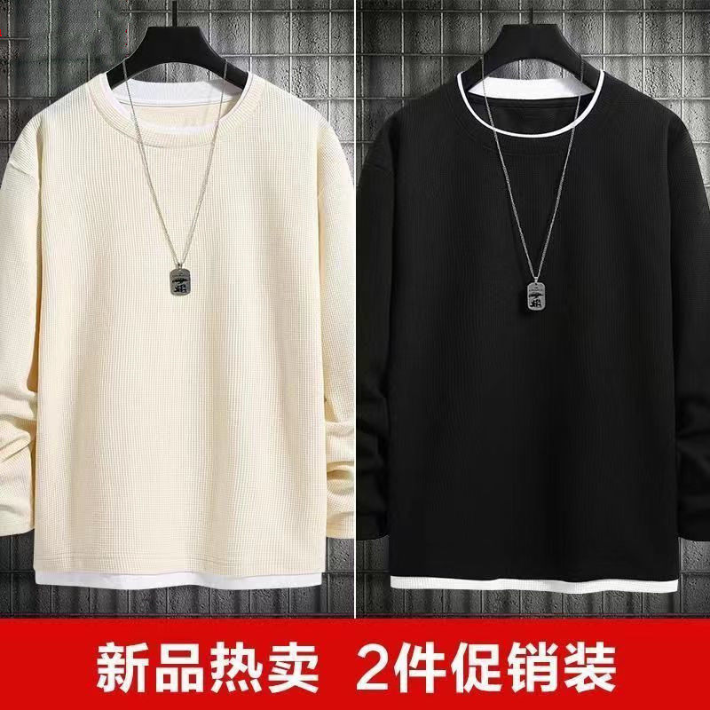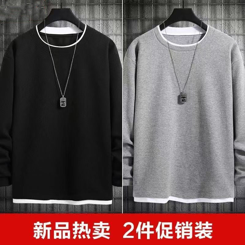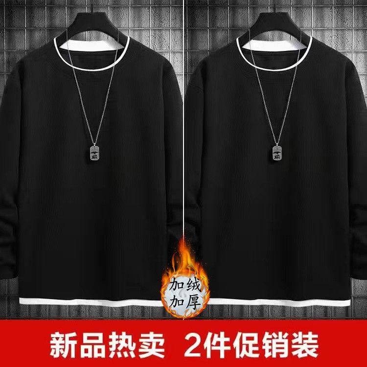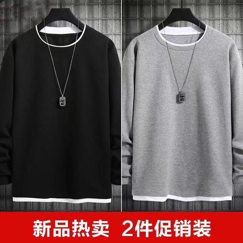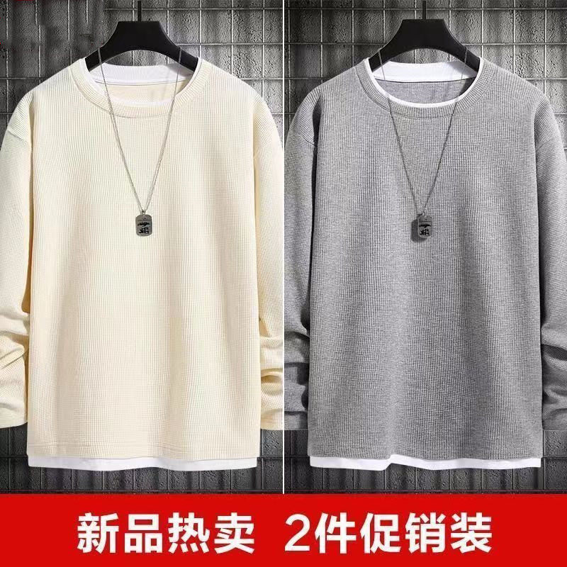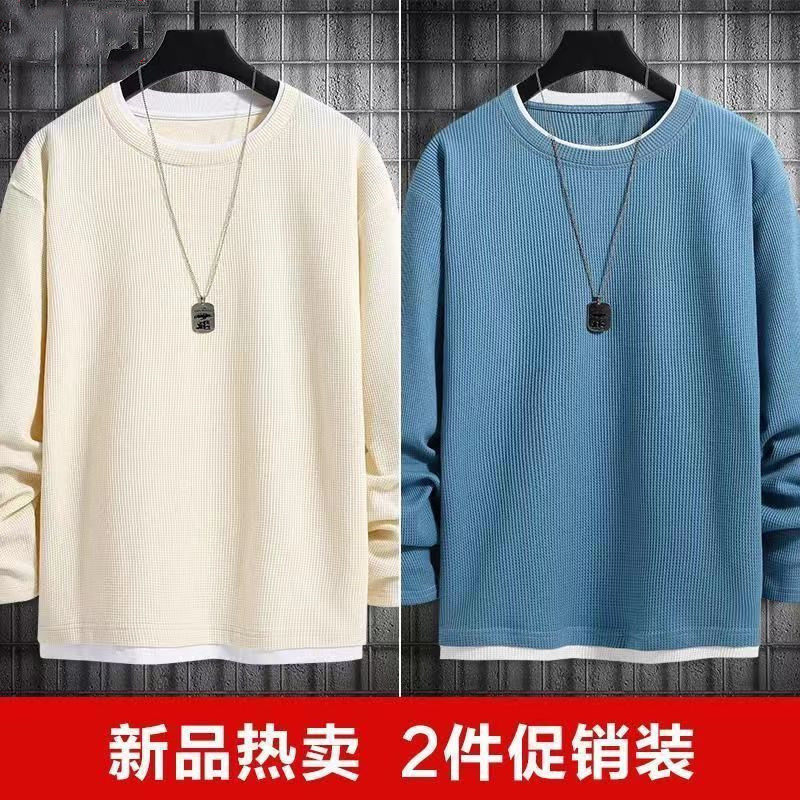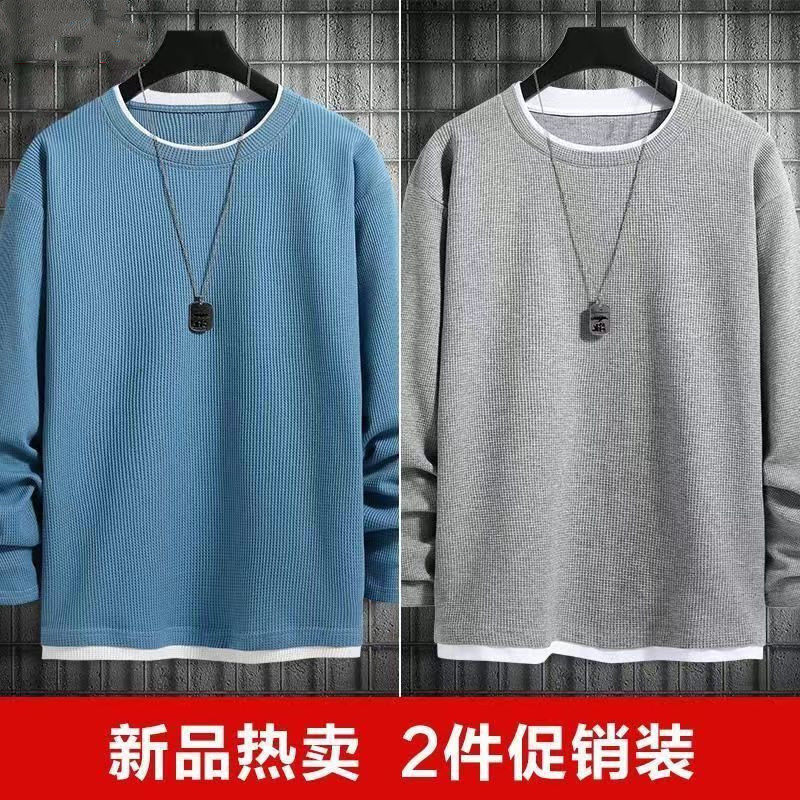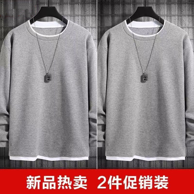 Clearance pick up leaky fakes, two waffle long-sleeved T-shirts, men's autumn and winter loose plus-size plus-size plush pullovers, sweatshirts, jackets, trends