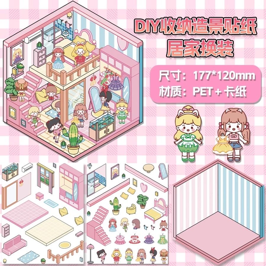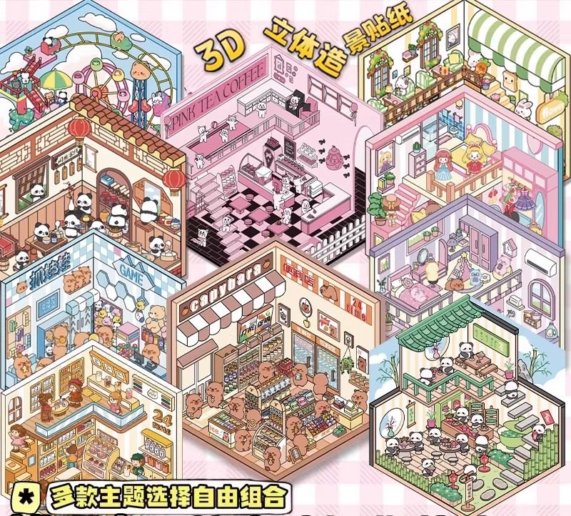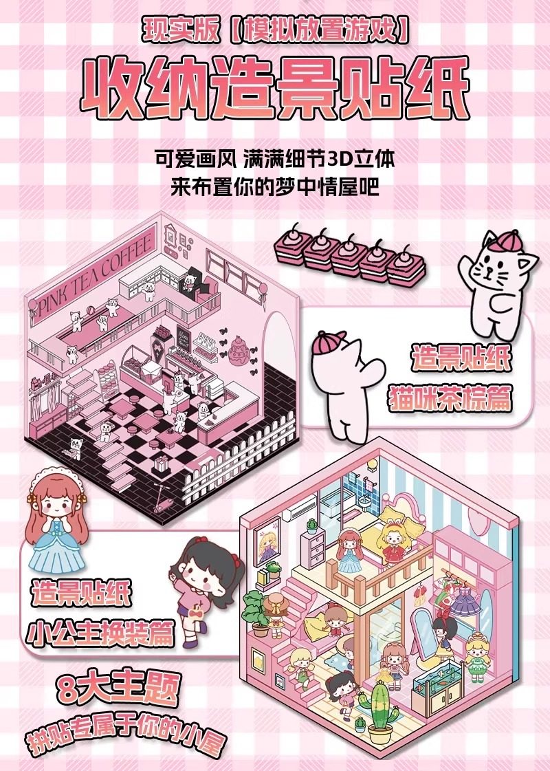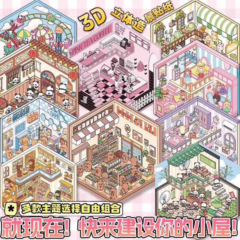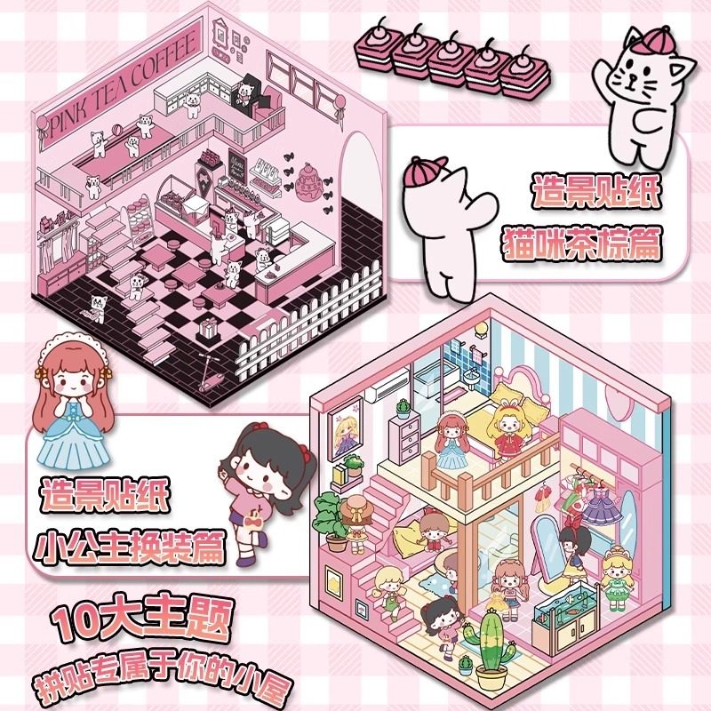 Miniature scene collection, this landscaping sticker, 3D stereoscopic sticker, handbook sticker, decorative material, girl, children's puzzle