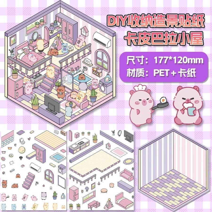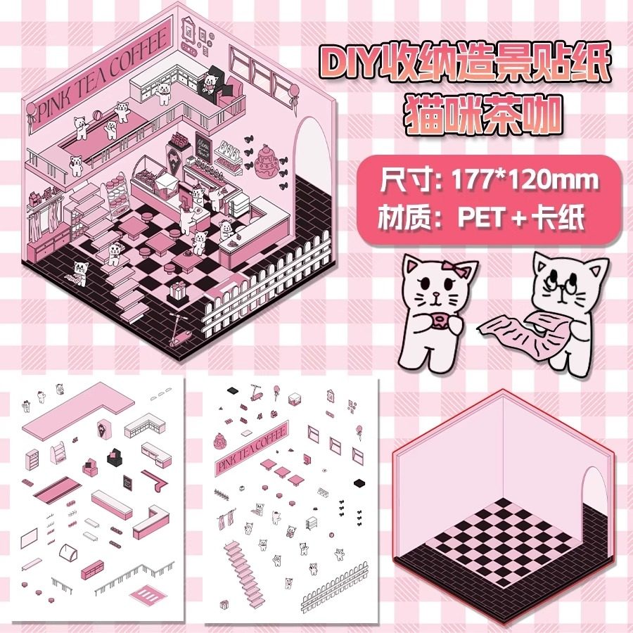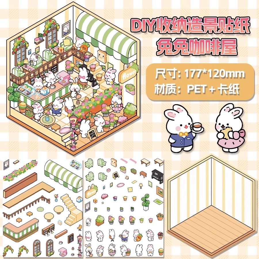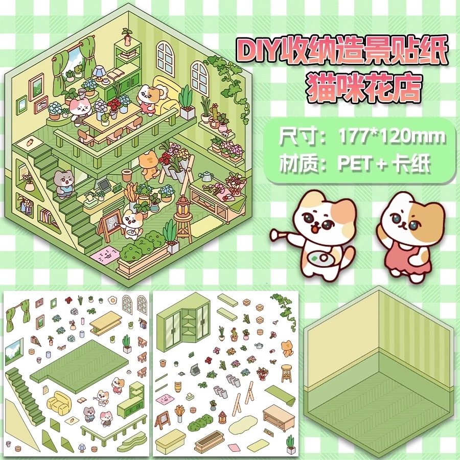 Miniature scene collection, this landscaping sticker, 3D stereoscopic sticker, handbook sticker, decorative material, girl, children's puzzle