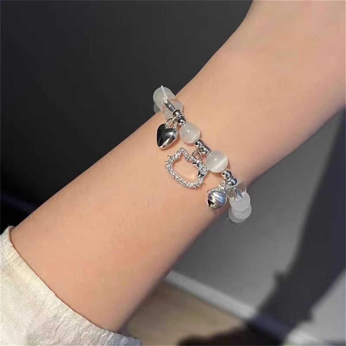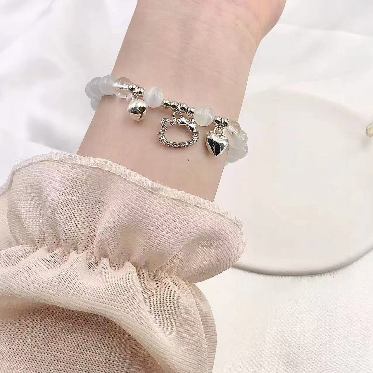 crystal bracelet cute cat love bell bracelet female niche design ins gift girlfriend gift sister hand jewelry