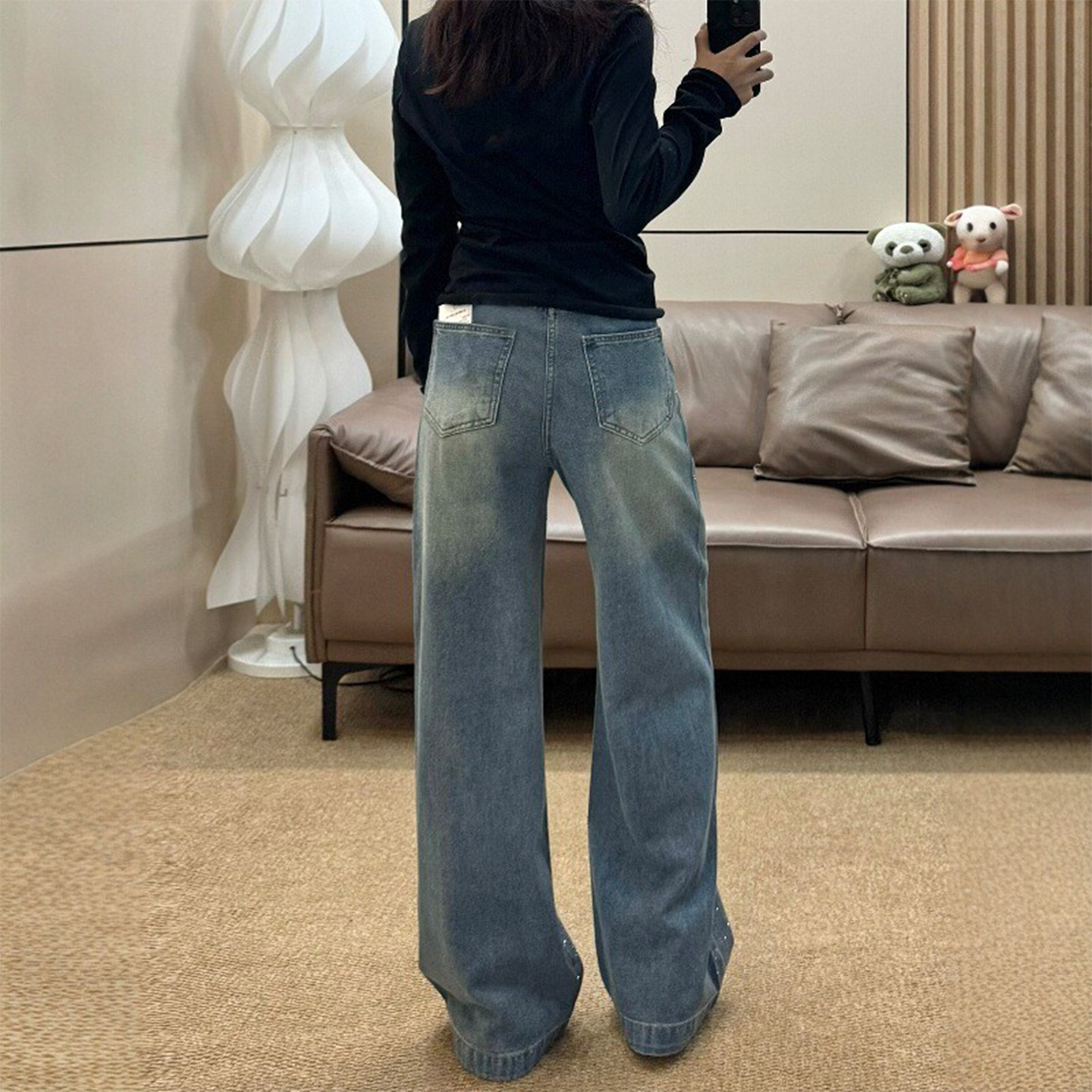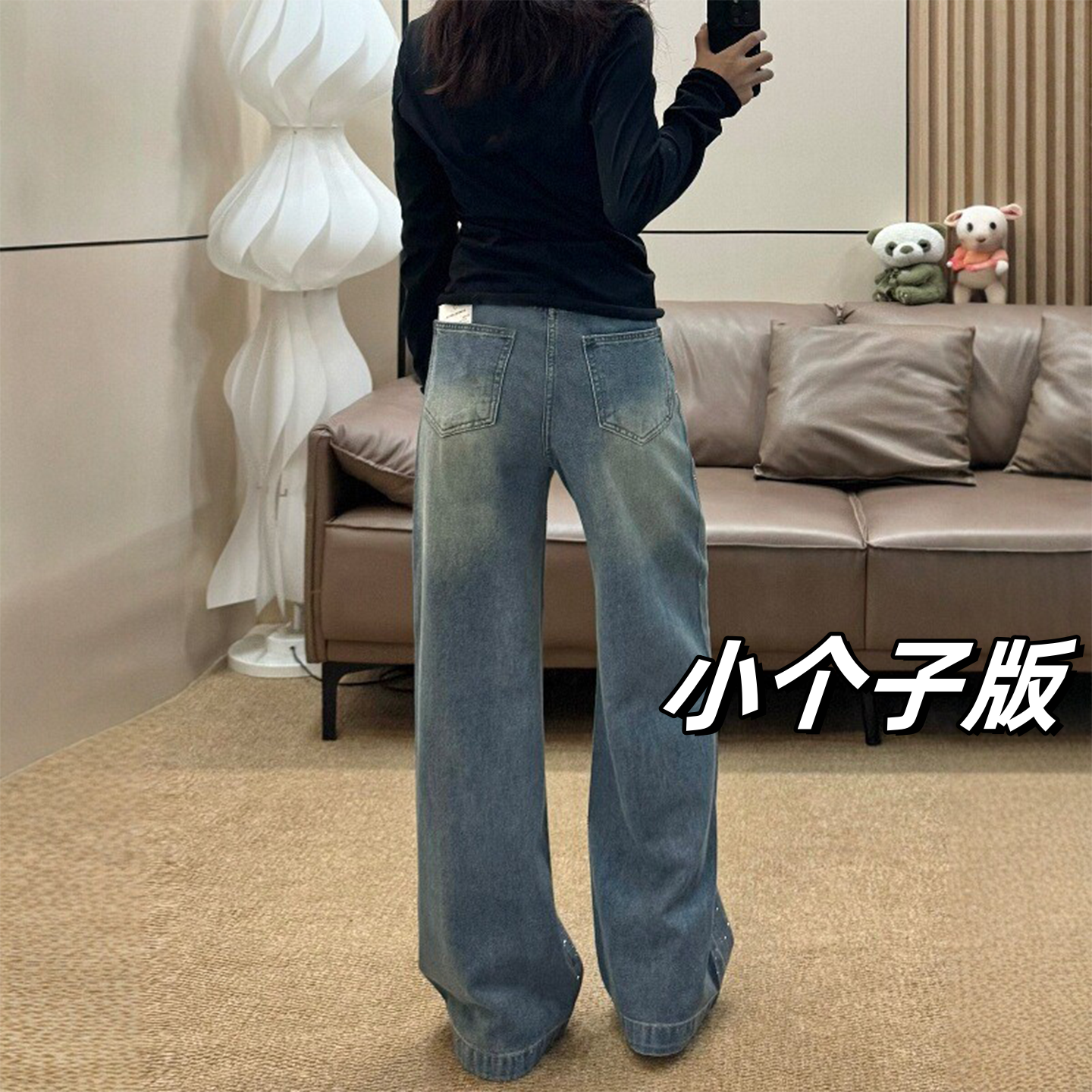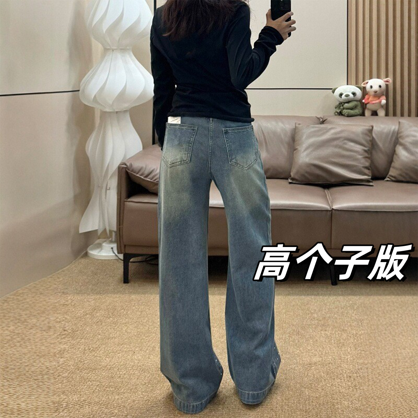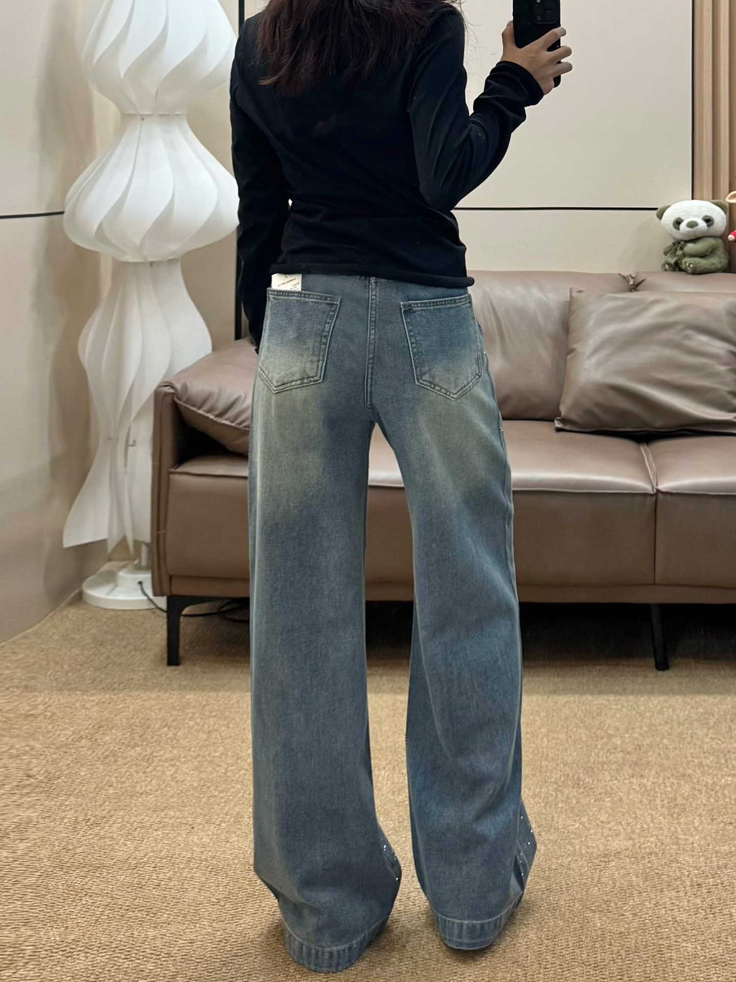 Baby's breath hot diamond wide-leg jeans women's autumn and winter fleece plus-size fat mm high-waisted loose slimming straight-leg floor-length pants