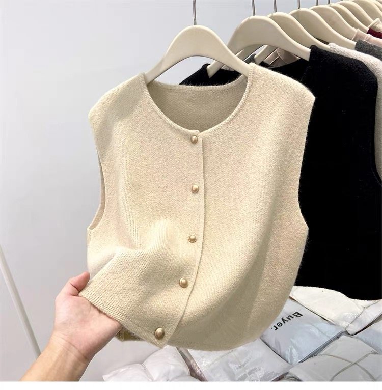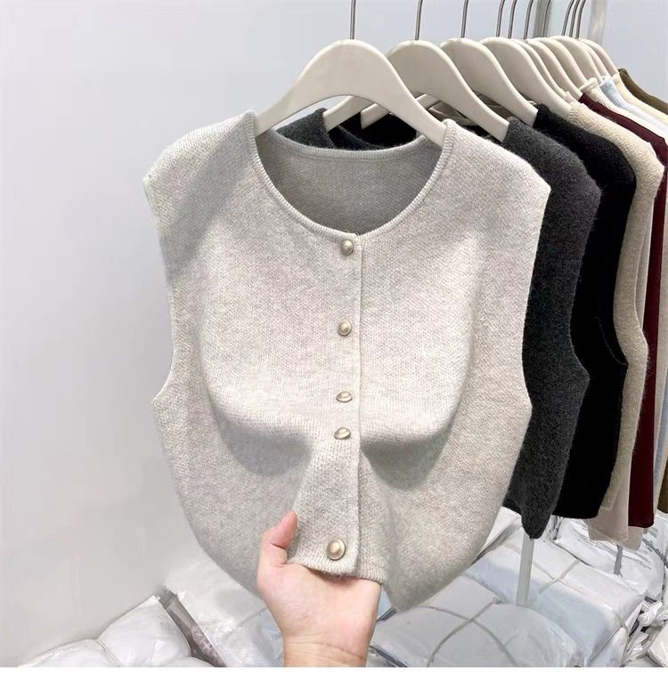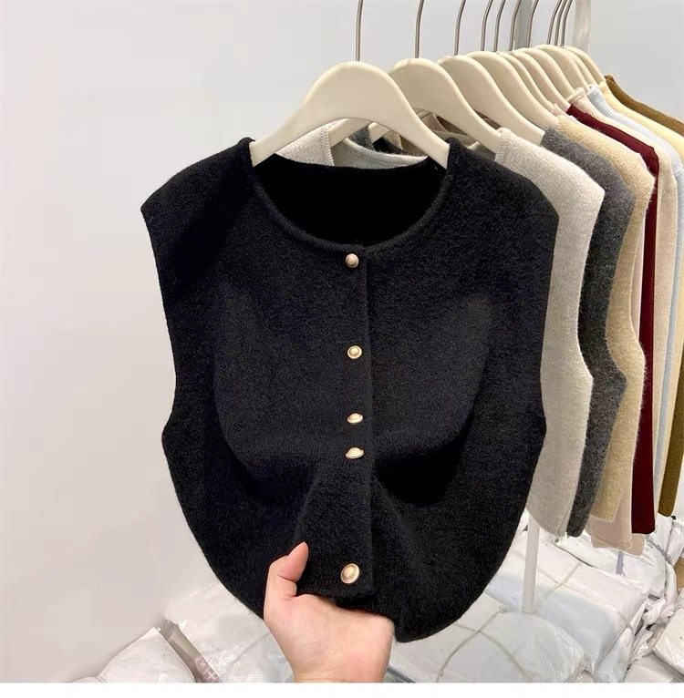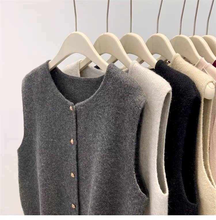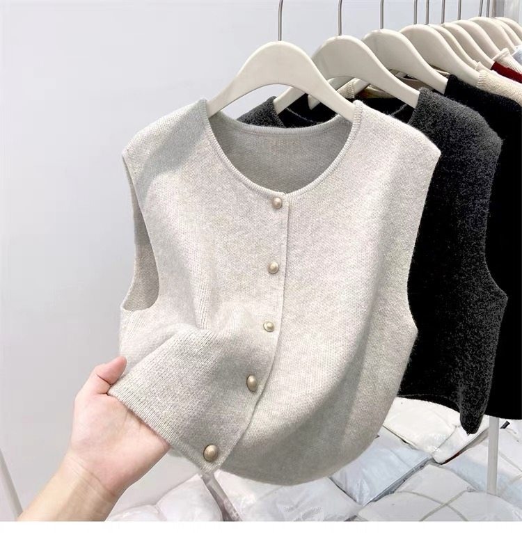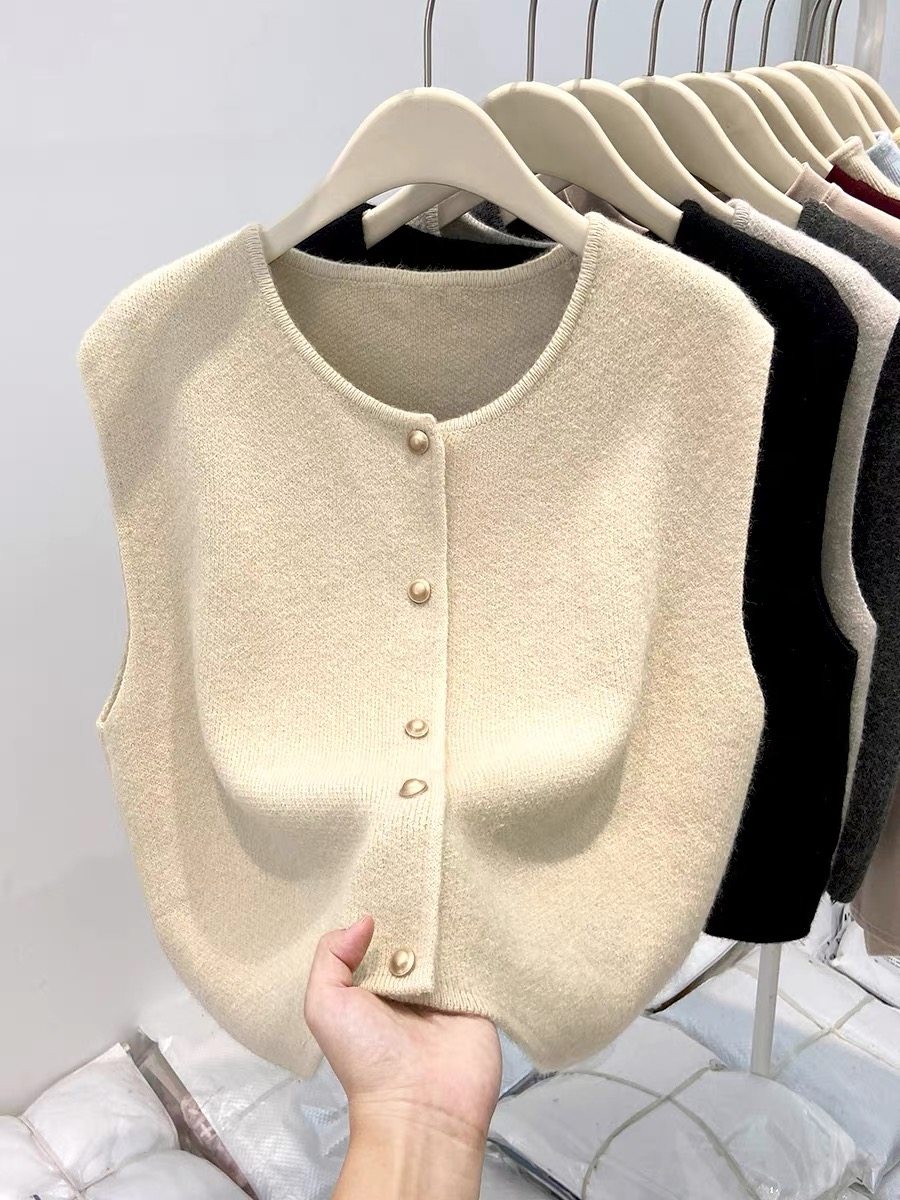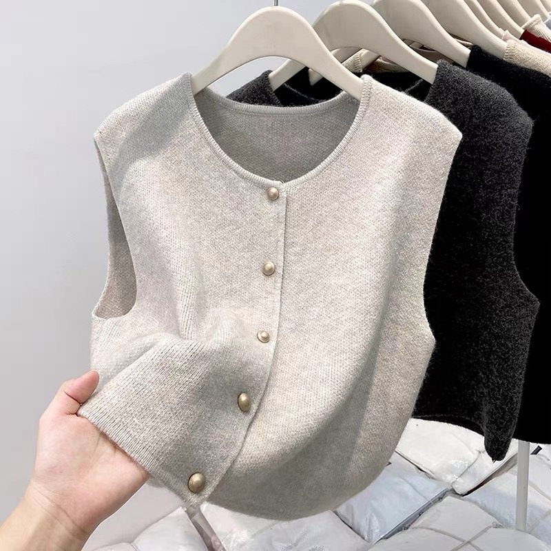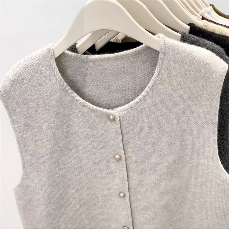 European fashionable women's 2025 autumn new knitted vest vest layered with winter tops, sweaters, and shoulder cardigans
