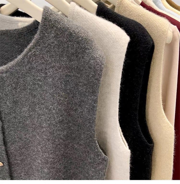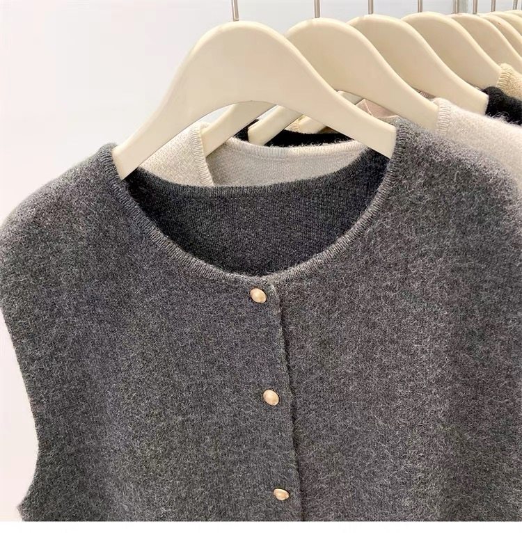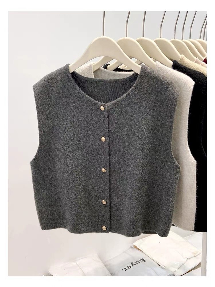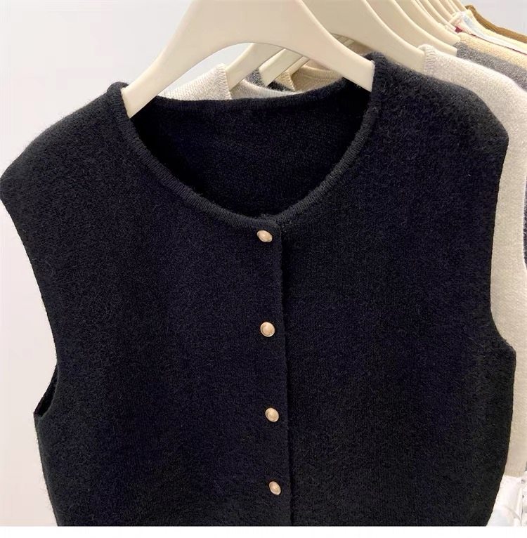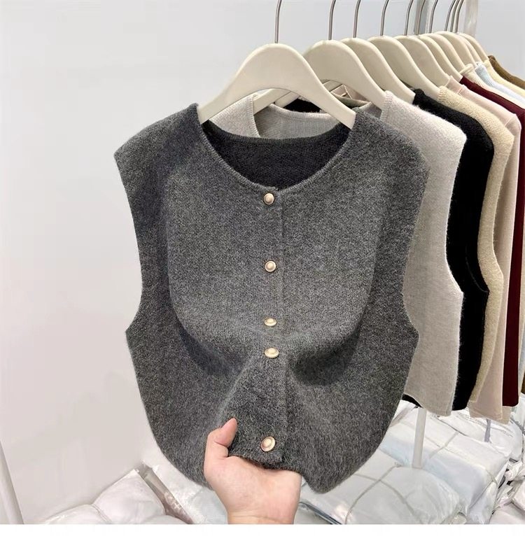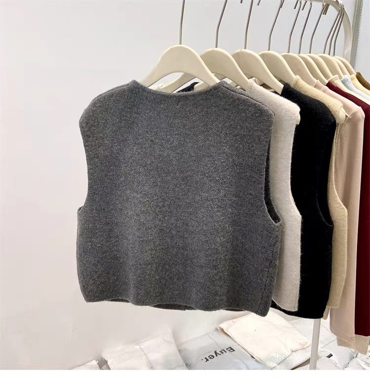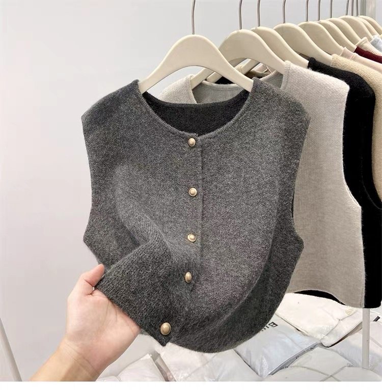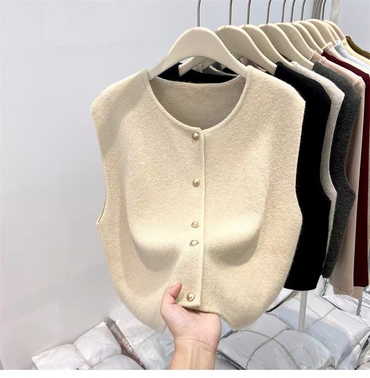 European fashionable women's 2025 autumn new knitted vest vest layered with winter tops, sweaters, and shoulder cardigans