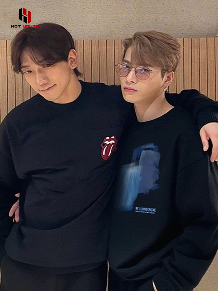 Hong Kong fashion brand Wang Jiaer same crew neck sweatshirt pure cotton casual men and women couples are versatile autumn and winter plush top clothes