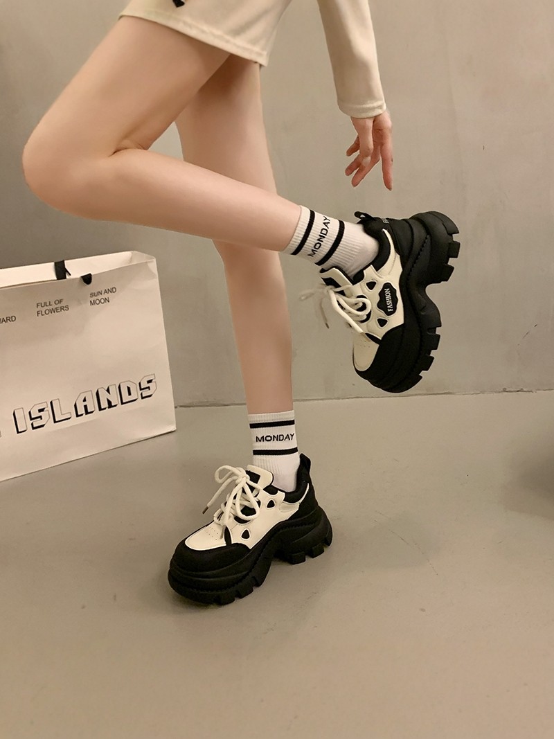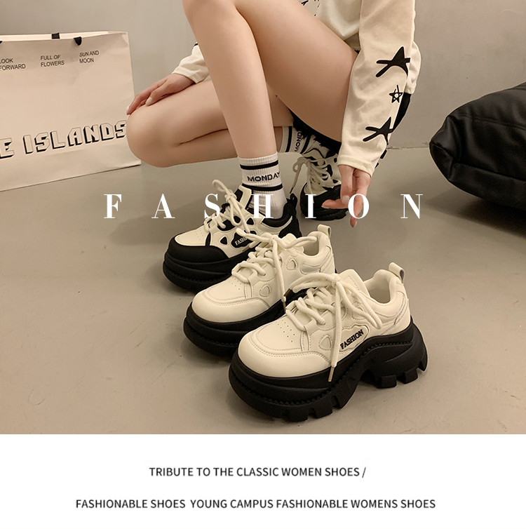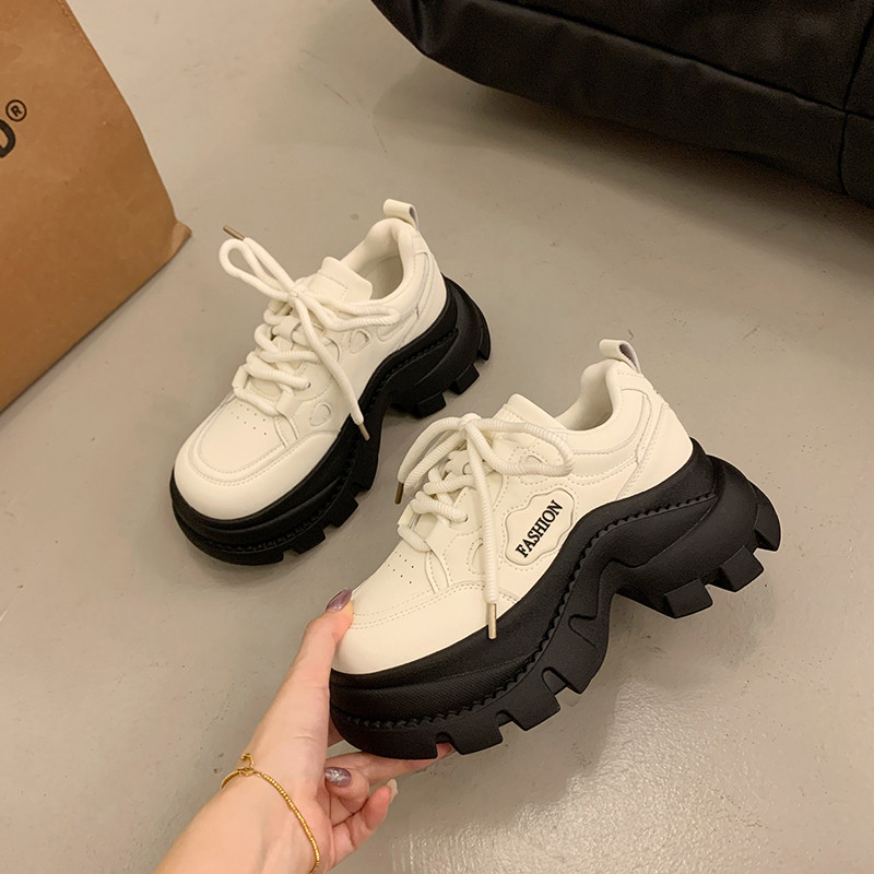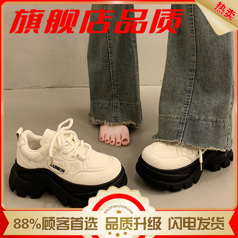 Popular muffin thick-soled daddy shoes for women to show their feet slightly increase in height, 2026 new autumn and winter versatile sports and leisure white shoes