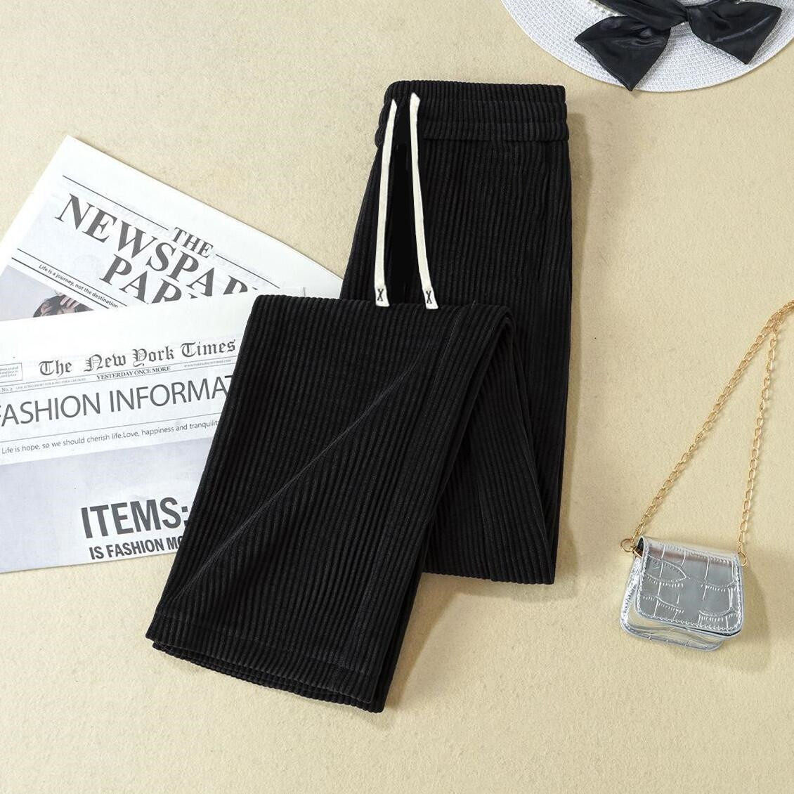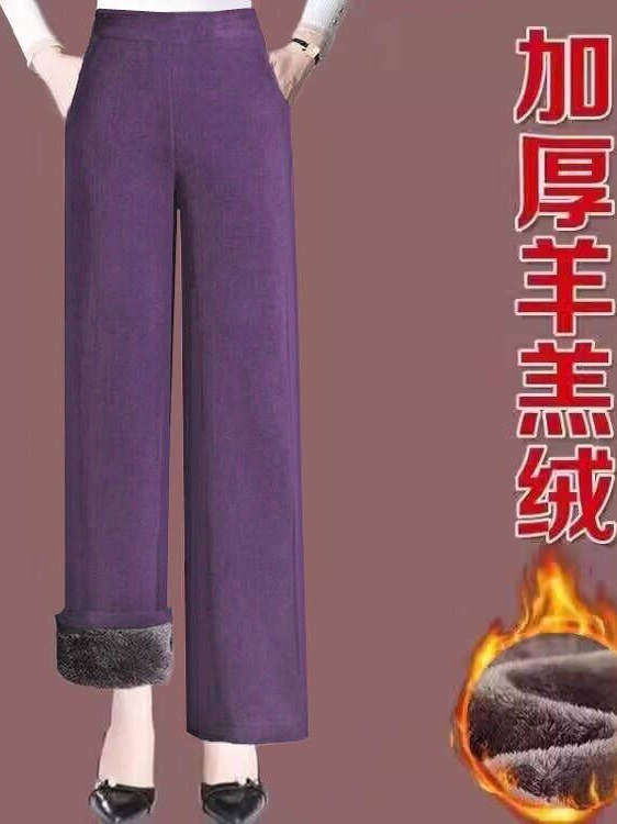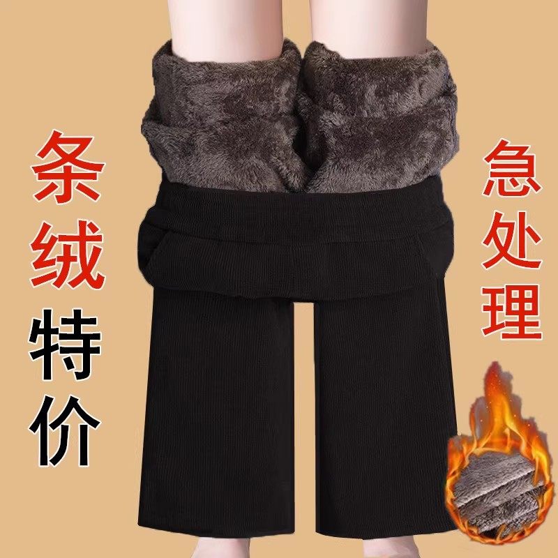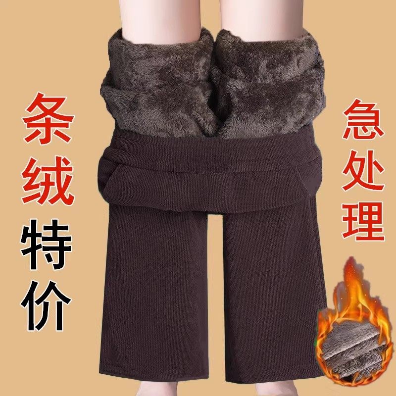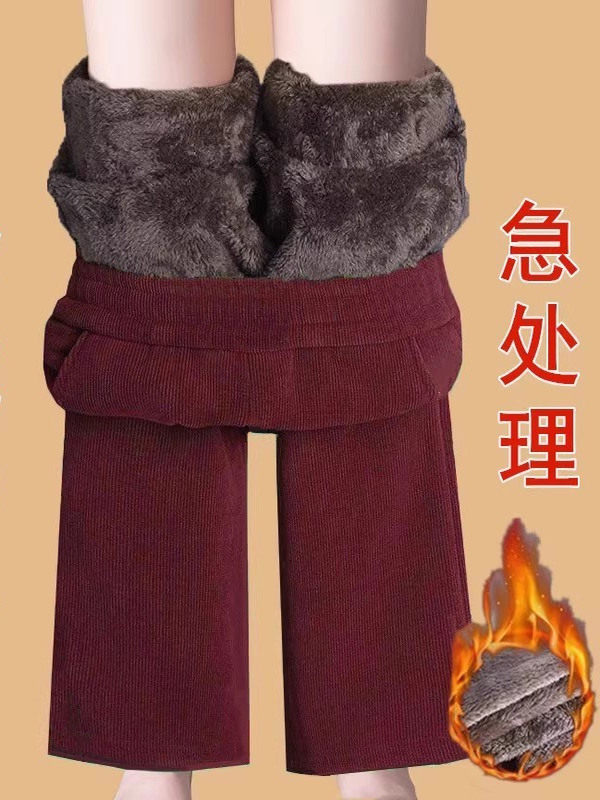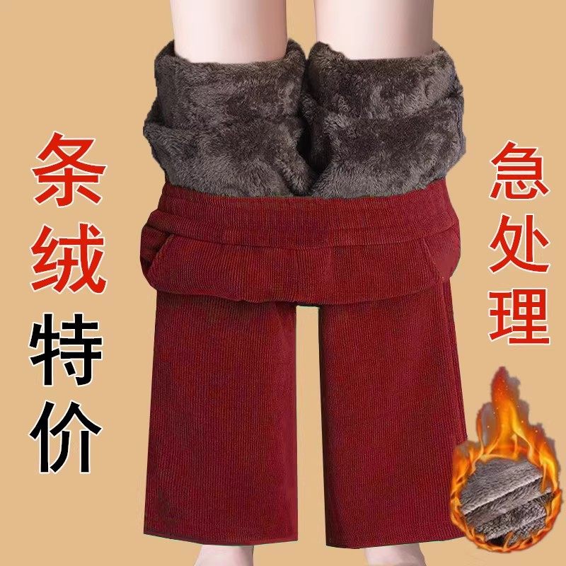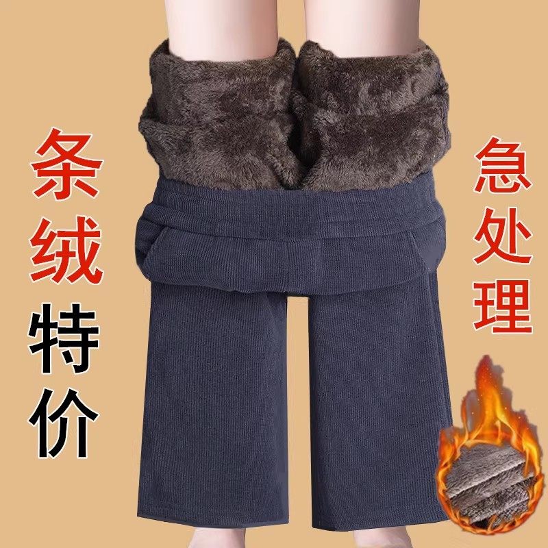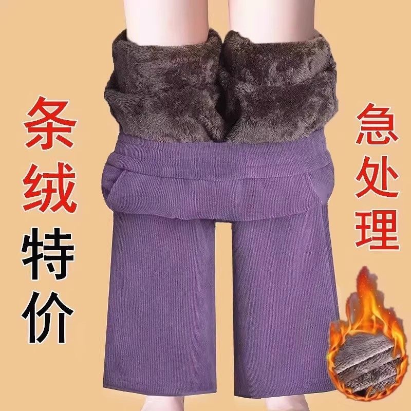 Autumn and winter new Korean version of middle-aged and elderly popular fleece thickened warm elastic waist corduroy straight slacks women's pants