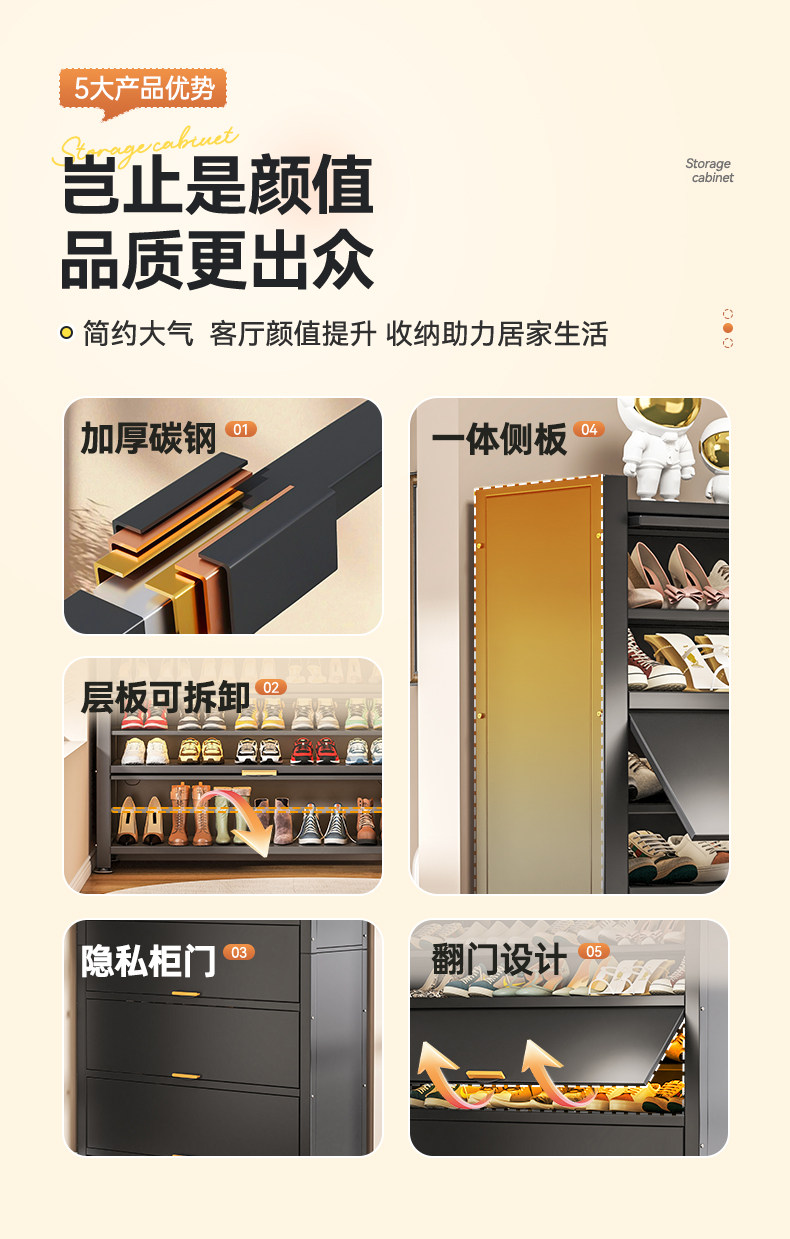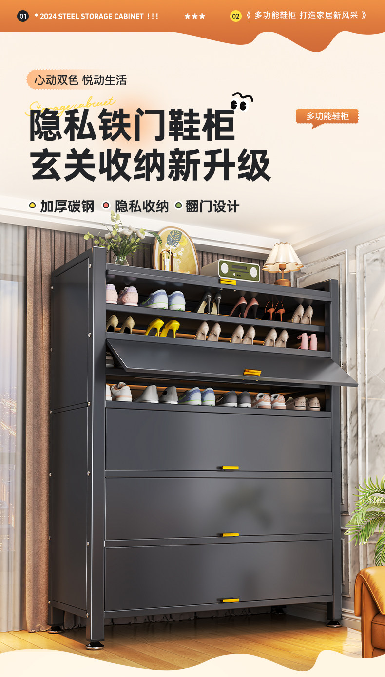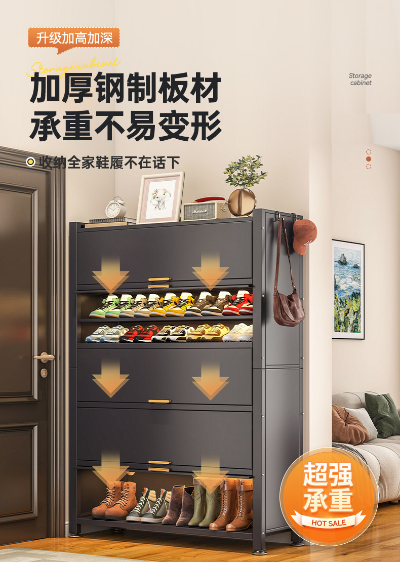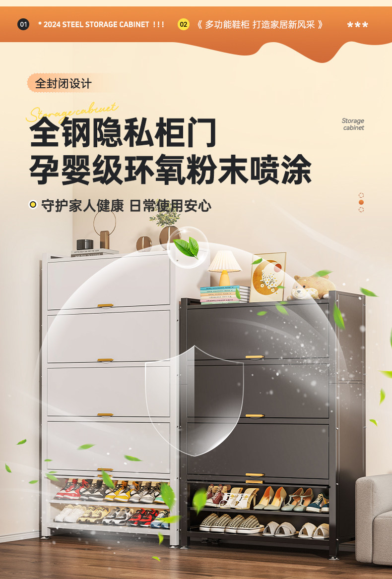 Wutong Bear steel shoe cabinet, household doorway storage cabinet, integrated wall entryway, large capacity storage cabinet, shoe rack