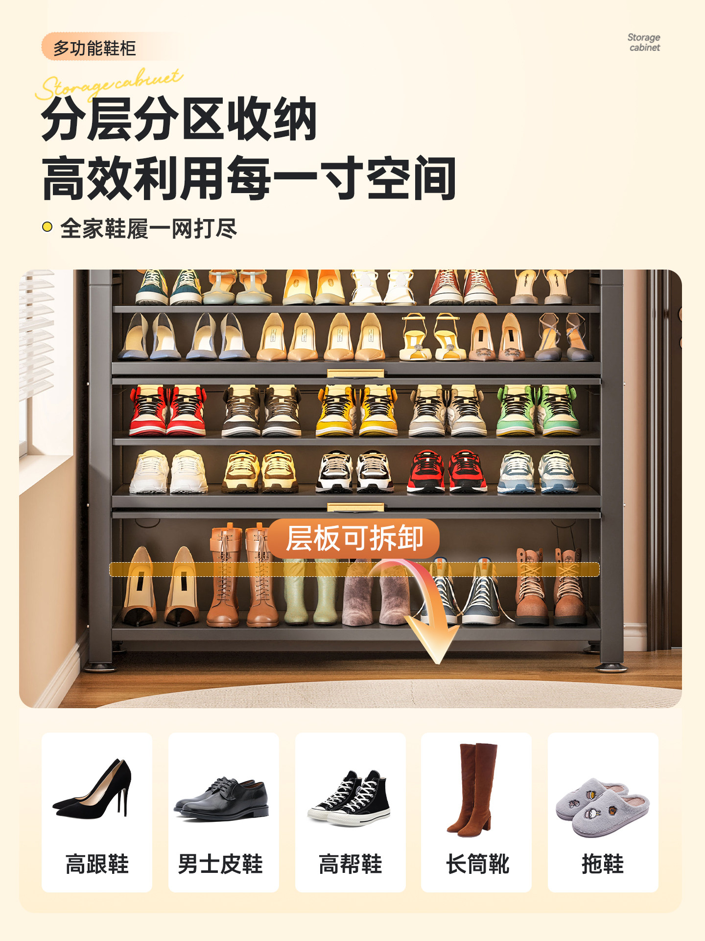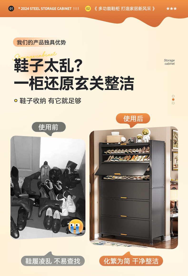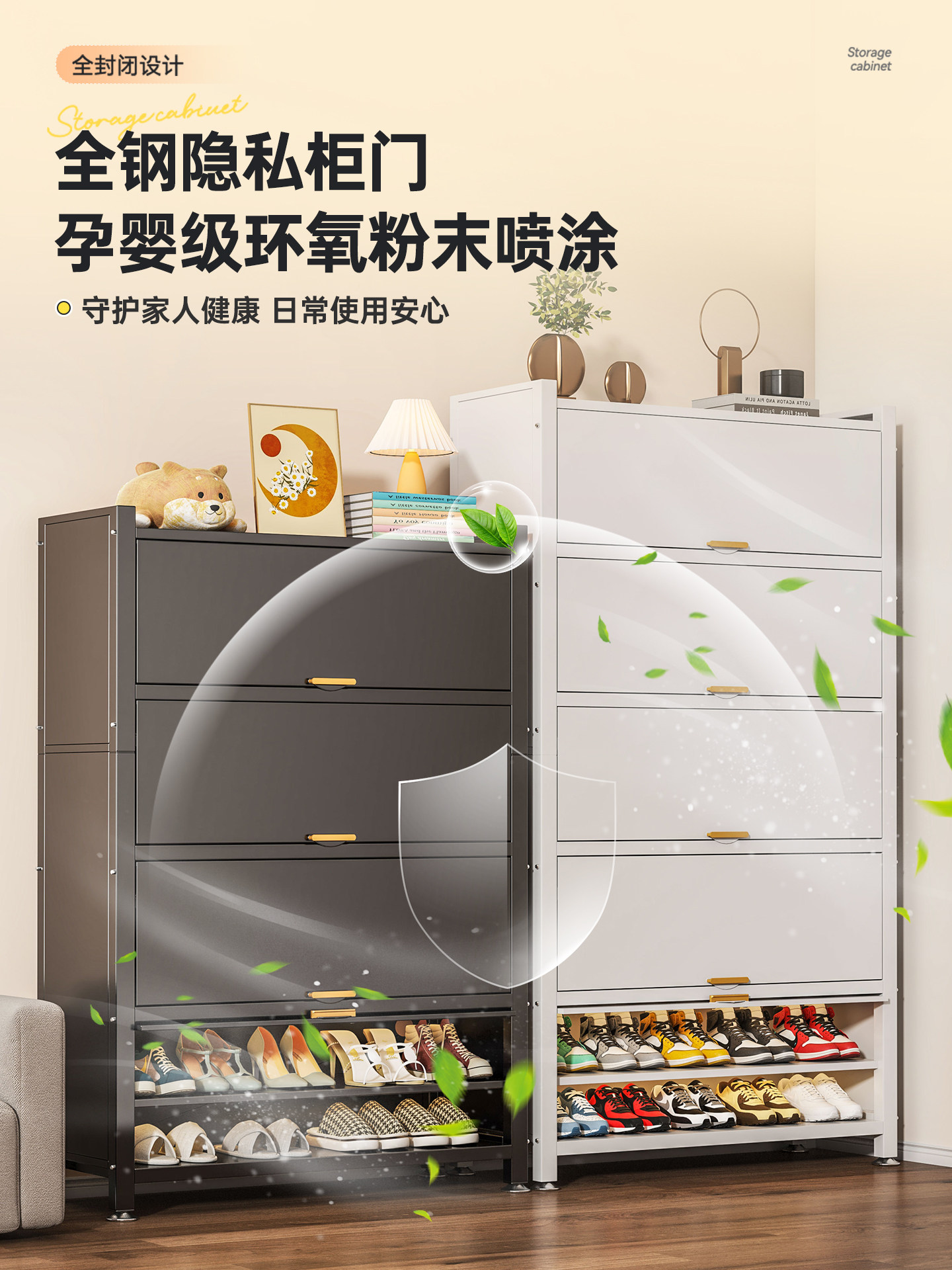 Wutong Bear steel shoe cabinet, household doorway storage cabinet, integrated wall entryway, large capacity storage cabinet, shoe rack